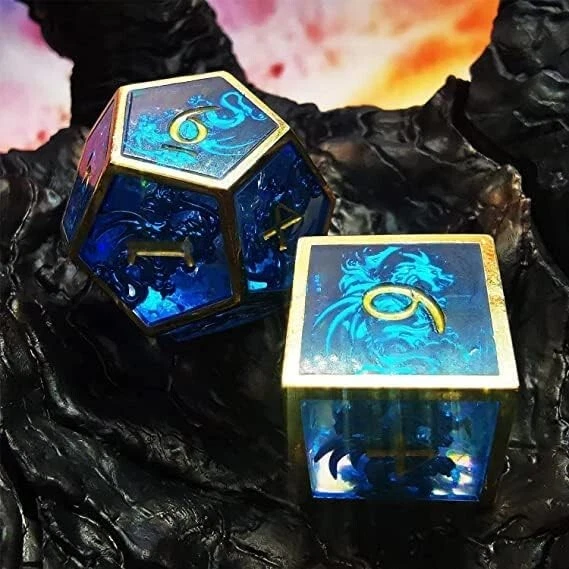 Premium Hollow Metal & Resin Blue Dragon Dice Set for D&D - 7-Piece Collection ‹ › ‹ › ‹ › ‹ › ‹ › ‹ › ‹ › ‹ › Premium Hollow Metal & Resin Blue Dragon Dice Set for D&D Experience a captivating journey through realms of fantasy with this exquisite 7-piece dice collection, designed for the discerning adventurer and tabletop role-playing aficionado. Features: Crafted from an innovative blend of hollow metal and environmentally friendly pure resin. Four unique layers of production ensure a unique and durable dice set. Multi-process hand polishing and painting for stunning visuals and precision. Includes 1x D20, 1x D12, 2x D10 (1 for 00-90, 1 for 0-9), 1x D8, 1x D6, and 1x D4. Designed specifically for tabletop RPGs, including D&D, Shadowrun, Pathfinder, and more. Benefits: Exceptional balance that enhances your gaming experience. Firms up your rolls with a solid feel that signifies quality. Suitable for a variety of RPG and card games, adding flair to your gameplay. Each die is crafted with attention to detail, ensuring strict dimensions and shapes. Worry-free warranty for customer satisfaction and support in case of any issues. Why choose our Premium Hollow Metal & Resin Dice Set? Elevate your gaming sessions with the Premium Hollow Metal & Resin Blue Dragon Dice Set. These beautifully crafted dice not only embody the spirit of adventure but also showcase the artistry involved in their creation. Whether you're battling dragons, exploring dungeons, or embarking on epic quests, this set promises an unparalleled gaming experience. Perfect for both seasoned players and newcomers alike, each dice roll becomes a spectacle with these stunning blue dragon-themed dice. Immerse yourself in the world of role-playing games like never before—order your set today and let the games begin! Shipping Free & Fast Shipping - We offer free shipping to most of the USA with a normal delivery time of 3-7 days. However, due to the current situation, additional delivery time (up to 3 weeks) may be required for some items. Alternative Carriers - We may use alternative carriers (e.g. USPS, FedEx, UPS, etc.) to ensure your package arrives safely and on time. Due to the use of multiple carriers, we are unable to provide a tracking number automatically. Handling Time - Orders are processed and shipped within 1-2 business days of receiving cleared payment. Shipping Restrictions - Shipping to Alaska, Hawaii, Puerto Rico, Guam, and other US territories may incur shipping charges or delivery restrictions. Please contact us before ordering, or your order can be refunded/cancelled. State Restrictions - There may be restrictions based on your state of purchase. For example, certain items may not be shipped to California due to state regulations. Contact for Tracking Updates - If you require tracking updates or have any concerns about the delivery of your order, please feel free to contact us, and we will be happy to assist you. Return 30-Day Hassle-Free Returns - We want you to be completely satisfied with your purchase. If you are not, you can return the item within 30 days of receiving it for a full refund or exchange. Easy Return Process - To start a return, simply contact us and we will provide you with a prepaid return shipping label and detailed instructions. Restocking Fee - There are no restocking fees for returns. However, the buyer is responsible for return shipping costs if the return is not due to a seller's error. Refund Processing Time - Refunds will be processed within 5 business days of receiving the returned item in its original condition. Payment We accept all major credit cards, PayPal, and Apple Pay for your convenience. Your payment information is secure and encrypted to ensure a safe and seamless transaction. Please complete your payment within 3 days of purchase to avoid any delays in shipping. Feedback Your feedback is extremely important to us. We strive to provide the best products and customer service possible. If you are satisfied with your purchase, please take a moment to leave us a positive review. If you have any concerns or issues with your order, please contact us before leaving negative feedback. We are committed to resolving any problems and ensuring your satisfaction. Contact Us If you have any questions or concerns, please feel free to reach out to our customer support team. You can contact us through the eBay messaging system. We are available Monday to Friday, 9:00 am to 5:00 pm EST, and we will do our best to respond to your inquiry within 24 hours. Buy it now and enjoy a pleasant shopping experience! UPC: Not Set Recommended Age Range: Adult MPN: Not Set Age Level: 17 Years & Up Character Family: Dungeons & Dragons Brand: Unbranded Year: Not Set Country/Region of Manufacture: Not Set