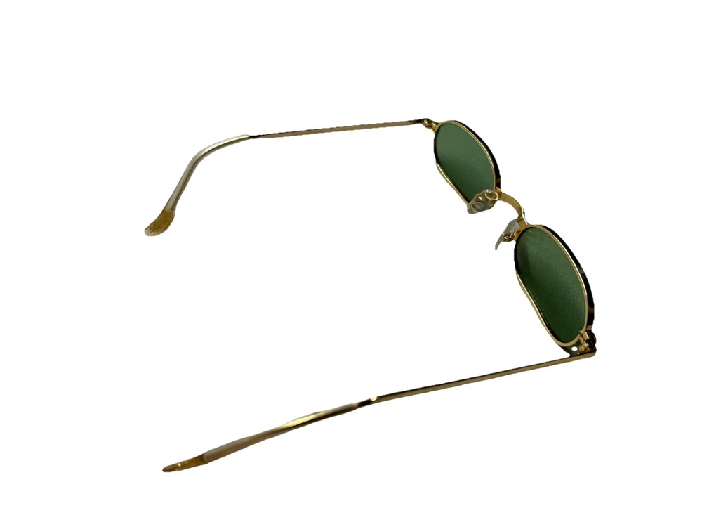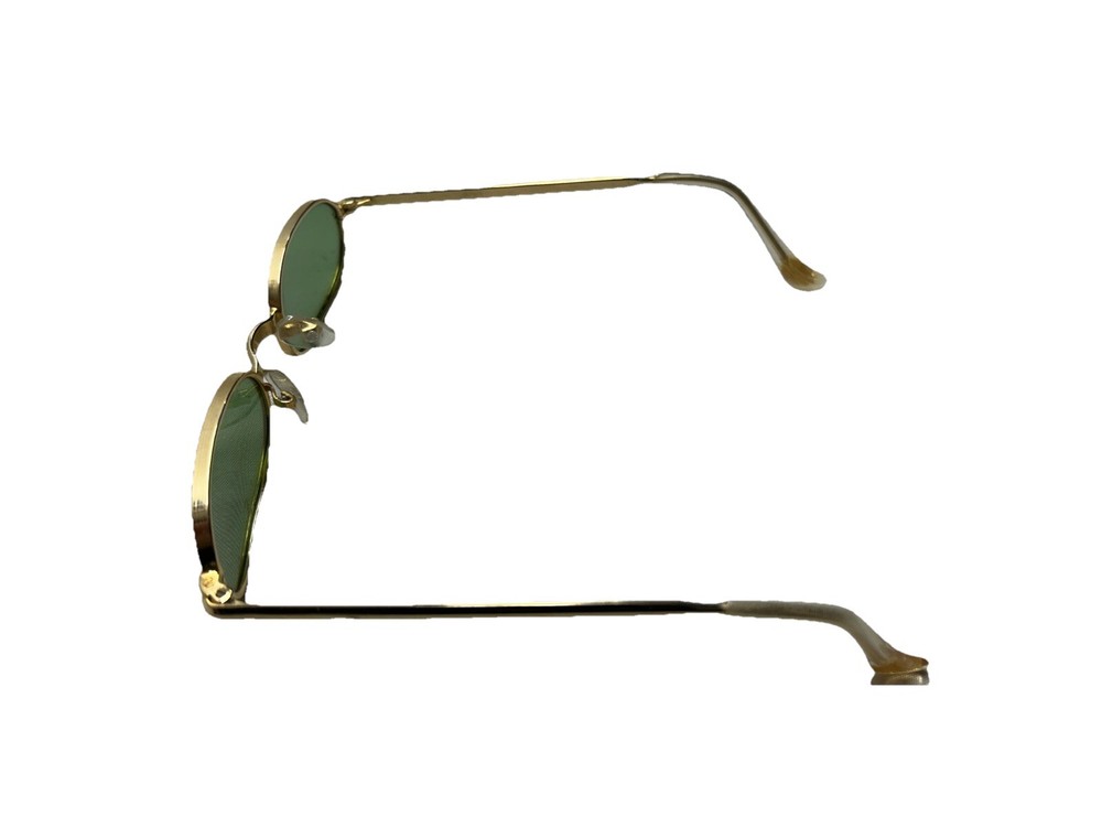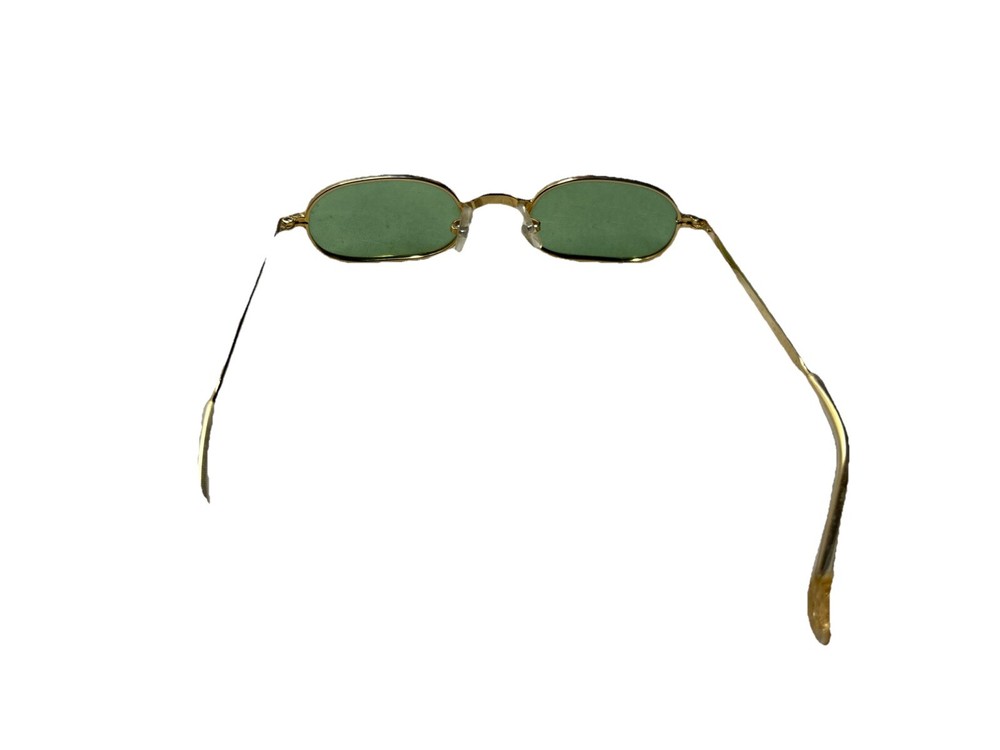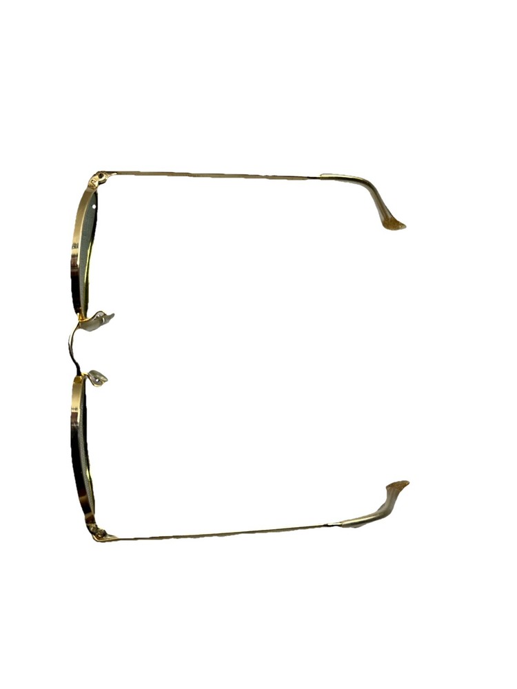 Elevate your style with these stunning gold metal sunglasses made in Japan. The unisex design makes them perfect for anyone looking to add a touch of sophistication to their outfit. Crafted from high-quality materials, these sunglasses are built to last… these glases are built really well… they are prescription so you would have to change the lens on it…the only markings i can see say japan… i couldnt find model number on it…