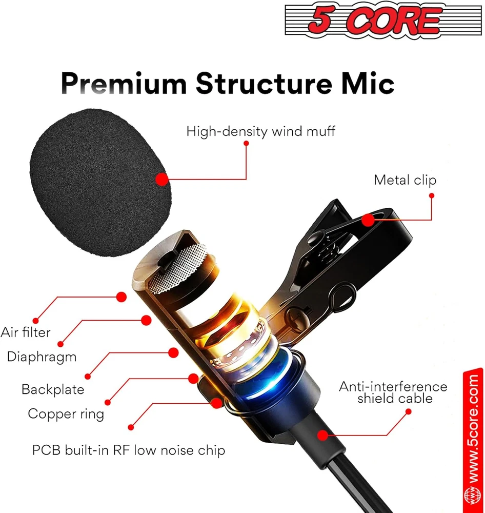 Premium Lavalier Microphone Lapel Clip-On Mini Wired Omnidirectional Condenser M