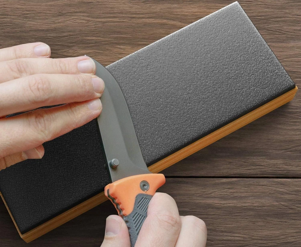 Premium Leather Strop for Knife Sharpening with Polishing Compound - Sharpening Strop for Knives, Straight Razor, Chisels - with eBook Guide Premium Quality: Our Classic Bamboo Base Leather Strop design has high build quality, lightweight & highly durable. The bamboo base has Non-Slip rubber base, premium cowhide leather & classic design makes it an ideal choice for many professionals like Chefs & Woodcarvers to keep their tools razor-sharp. Unmatched Performance: Not all strops are created equal as not all leathers are genuine or real, our sharpening strop block uses premium quality genuine cowhide leather. Using the green honing/polishing compound included in the kit you can put a True Mirror Polish on your Blade Edges Quickly. After sharpening your knife or tool on sharpening stone finish it off with leather strop for an Extremely Sharp Edge. Imagine this leather sharpening strop as your finest whetstone. Easy To Use: Due to its lightweight, Durable Design & large stropping leather area it's Easy To Hold in your hands without causing any strain. You can also pin it down on a working table nonslip rubber base will make it Secure & Safe to use. Imagine the green compound (buffing compound) as big crayon apply evenly on your surface this will help polish your blade edges more Quickly Multipurpose Use: We want you to have One Strop To Hone Them All to get a razor sharp edge quickly. You can sharpen all kind of tools like Chef’s knife, hunting knives, pocket knife, woodworking chisel, straight razors, axe & more Superior Bundle: Your complete leather strop kit comes with Classic Premium quality leather strop, Green Polishing compound & a detailed Ebook with lots of Tips & Tricks which will appeal at every skill level