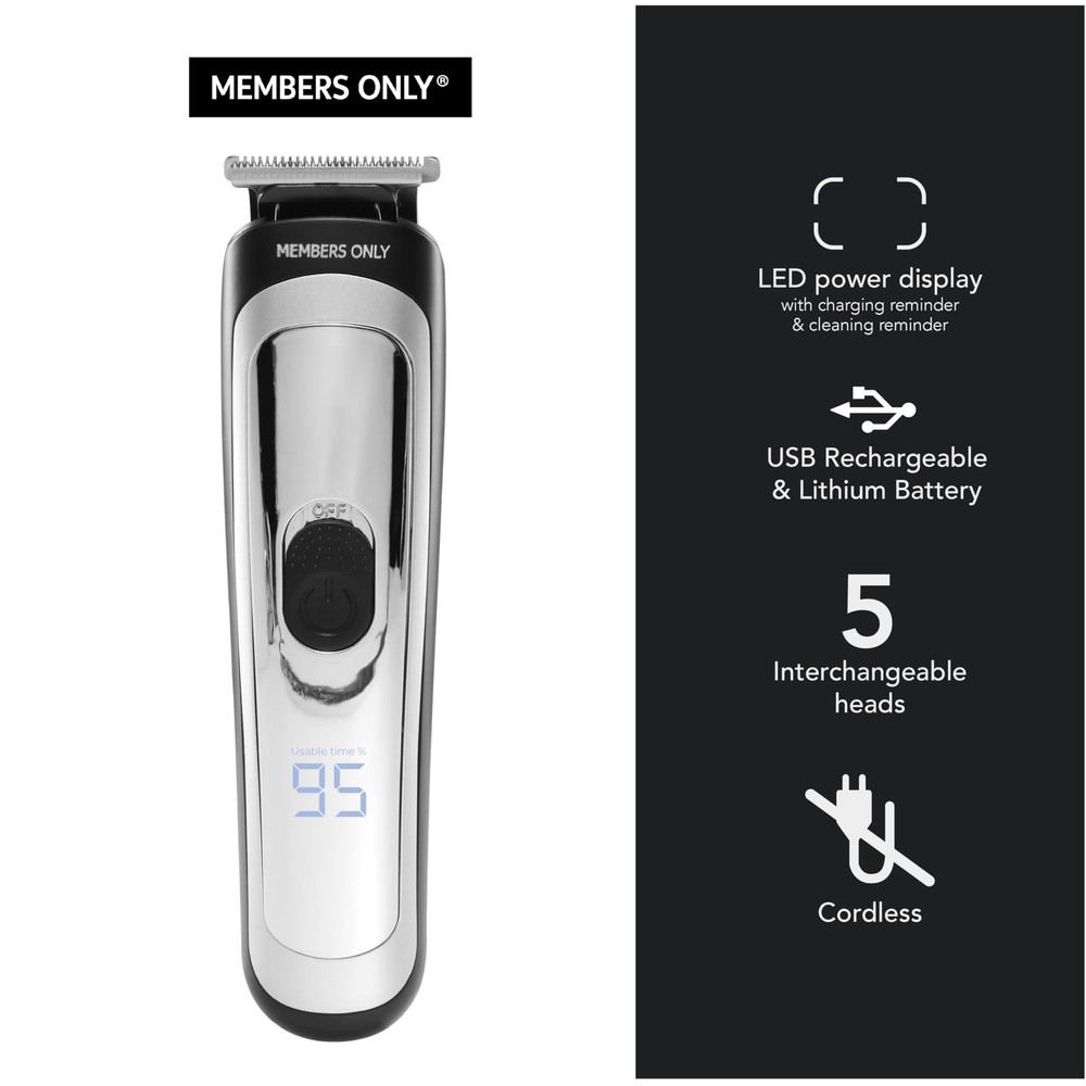 Experience Versatile Grooming Options: Effortlessly switch between five interchangeable heads, T-blade, U-blade, Micro Trimmer, Nose Hair Trimmer, and Foil Shaver, for precision grooming tailored to your style preferences. Customize Your Look with 4 Trimming Guides: Achieve the perfect trim with four guide combs (3mm, 6mm, 9mm, 12mm) that let you tailor your hair and beard styles to your liking, providing a professional touch in the comfort of your home. Stay Informed with the Smart LED Display: The hair trimmer for men features an intuitive LED display that not only shows the power level but also provides convenient reminders for charging and cleaning ensuring your trimmer is always ready for action. Effortless Recharging Anytime, Anywhere: Powered by a USB rechargeable lithium battery, this beard trimmer for men ensures cordless convenience, allowing you to recharge with ease and stay ready for on-the-go grooming. Complete Grooming Kit: Unbox the hair trimmer kit, which includes the cordless trimmer, all five heads, USB cable, charging tray, 4 trimmer guides, brush, lubricating oil, user manual, and enjoy peace of mind with a 1-year warranty.