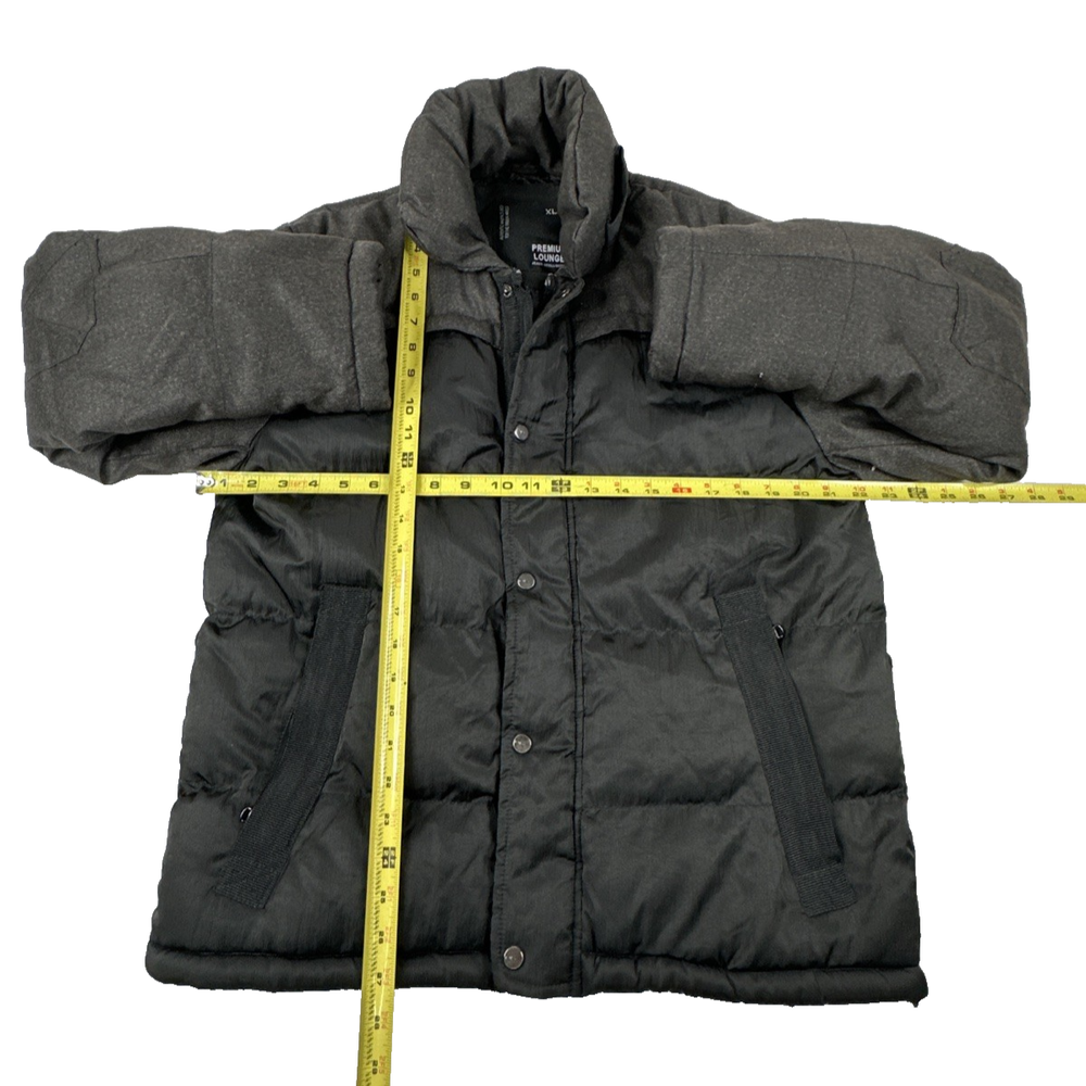 The Premium Lounge Black & Gray Insulated Puffer Jacket in Men's Size XL is a stylish and practical choice for the winter and fall seasons. Made of polyester with a solid black color, this jacket features a regular fit and is machine washable for easy care. It is designed for casual occasions and offers a comfortable fit for walking activities. The puffer style and insulated features make it a versatile and warm garment for colder weather.