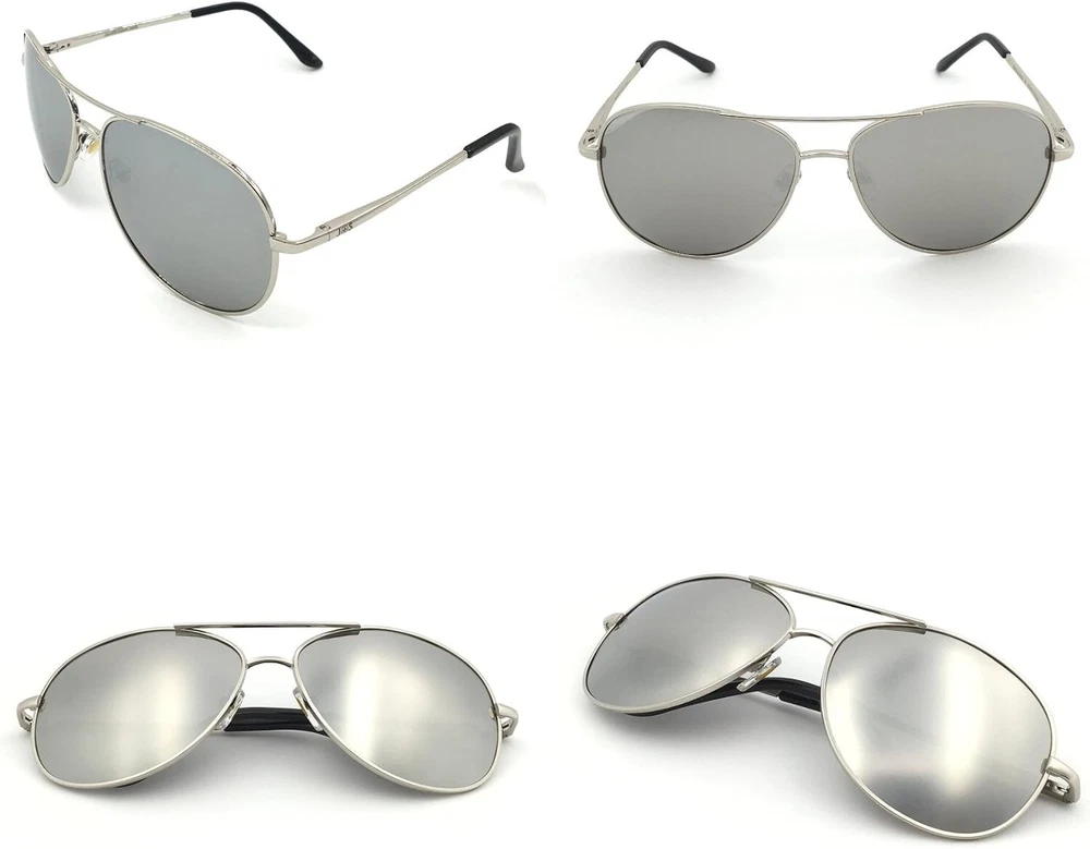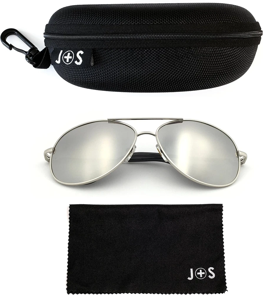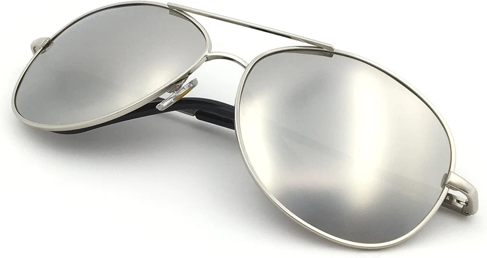 Premium Military Style Classic Aviator Sunglasses, Polarized, 100% UV protection for Men Women [Polarized lens] - Specialized multi-layer lens designed to filter and block over of glare - Polarized lenses block out intense horizontal reflections (glare) by having a vertically oriented filter layer embedded in the lens, providing maximum comfort and improved visibility. These lenses are tough, lightweight, scratch resistant, and have high optical clarity (distortion-free, clear vision), making them an excellent choice for general outdoor and water sports activities. [Ultraviolet light protection] - All lenses are UV400 rated, which can block 99%- 100% of UVA and UVB radiation. UV400-rated sunglasses are essential to protecting your eyes against long-term UV light damage and keeping your eyes healthy when out and about. [Duroframe metallic alloy frame] - Made with ultra-lightweight yet strong and durable Duroframe Metallic Alloy. It comes with spring-loaded hinged legs and adjustable silicon nose pads, allowing maximum comfort and flexibility. [Perfect all-rounder] - Being polarized and having 400UV protection makes these sunglasses the ideal choice for outdoor sports and activities such as driving, fishing, skiing, traveling, hiking, and boating. They are suitable as a high-fashion accessory and daily wear all round. They are also gift-packaged ready, making them an excellent yet practical gift idea for friends and family! [100% risk-free purchase] - All Sunglasses come with a 1- satisfaction on frames and lenses and a 30 Day Happiness SATISFACTION GUARANTEE. So, if you are not completely happy with your purchase for whatever reason, let us know, and we'll take care of you. Premium Military Style Classic Aviator Sunglasses Polarized and 100% UV protection - protect your eyes without compromising on style, comfort and safety. Polarized and 100% UV protection sunglasses help: - Reduce eyestrain, no tired eyes after a full day in the sun. - Reduce reflections and glare (especially important for those with sensitive eyes or post-surgery recovery) - Protect your eyes against harmful UV rays, minimizing damage to your eyesight in the long run. - Improve contrast and visual clarity Measurements: - Overall Width: 152mm (Large) / 140mm (Medium) - Lens Width: 62mm (Large) / 58mm (Medium) - Lens Height: 50mm (Large) / 46mm (Medium) - Temple Length: 130mm - Bridge Width: 14mm Large (62mm): Suitable for average - large male, or female for a oversized fit Medium (52mm): Suitable for the average male, or female Here are 5 reasons you're going to love your Military Style Classic Aviators: 1. It blocks 99-100% of both UVA and UVB harmful radiation 2. It has a special polarized filter to block over of glare 3. Classic unisex design (So you can protect your eyes while looking stylish) 4. Made of lightweight yet durable metallic alloy with spring-loaded hinges ensuring maximum comfort. 5. Backed by a happiness SATISFACTION GUARANTEE and a 1- Order yours now because you risk nothing! Bonus: All sunglasses come gift packaged ready, making these sunglasses an excellent yet practical gift idea for your active friends and family! Order your Premium Military Style Classic Aviator Sunglasses and join thousands of other satisfied customers who love the difference!