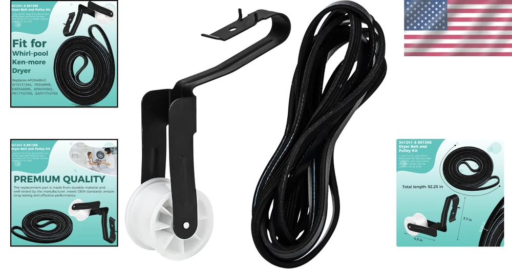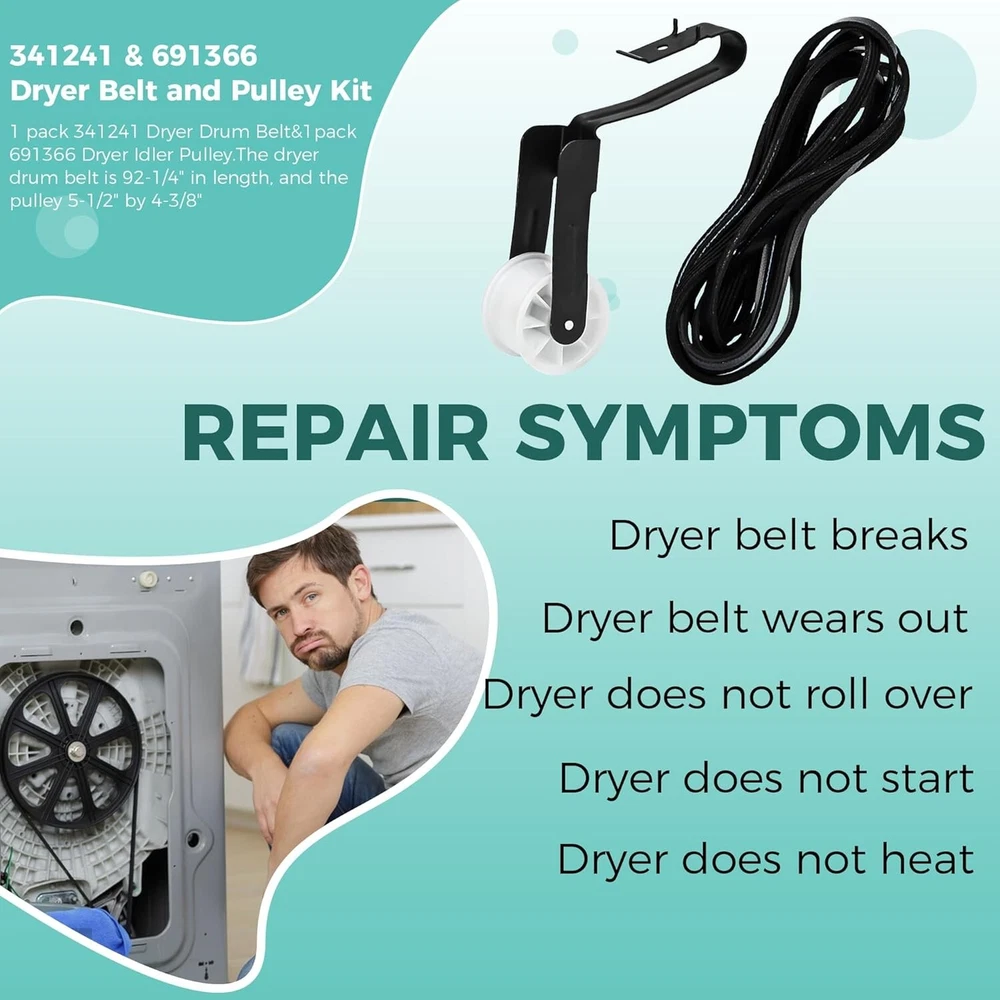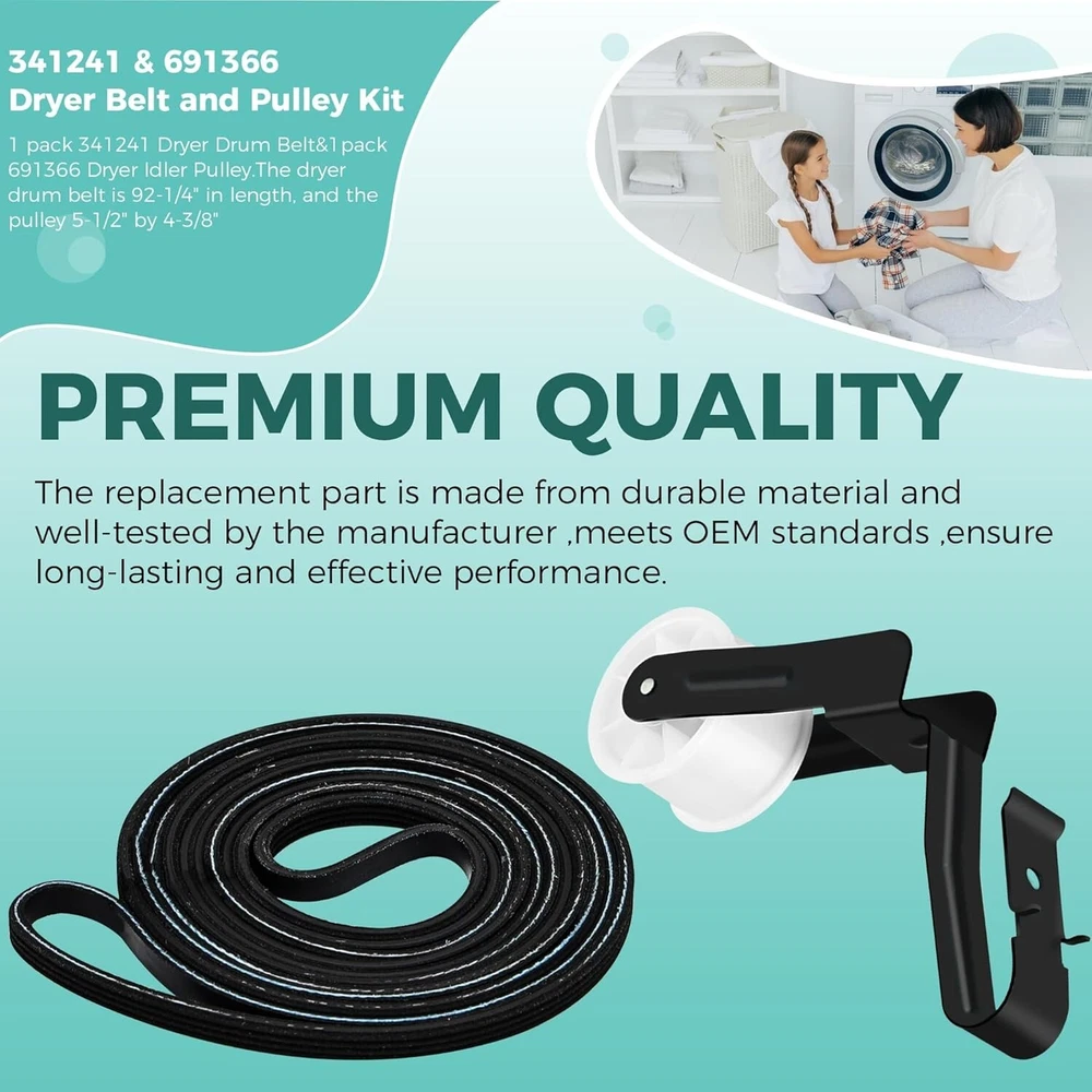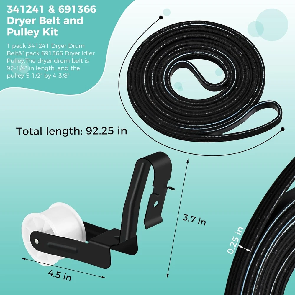 Premium Quality Dryer Drum Belt and Idler Pulley Kit for Easy Home Repairs ‹ › ‹ › ‹ › ‹ › ‹ › ‹ › ‹ › ‹ › ‹ › Premium Quality Dryer Drum Belt and Idler Pulley Kit Ensure your dryer operates at its best with this easy home repair solution. Our complete kit includes: 1 pack of 341241 Dryer Drum Belt (Length: 92-1/4") 1 pack of 691366 Dryer Idler Pulley (Dimensions: 5-1/2" x 4-3/8") Key Replacement Parts: This kit replaces several OEM parts, including: 14210003 31001026 31531589 3389628 3392665 341241VP And many more... Repair Symptoms: This kit addresses common dryer issues, including: Dryer belt breaks or wears out Dryer does not roll or start Dryer does not heat or heats insufficiently Unusual and loud noises Long drying times Burning smell Easy Installation: With our user-friendly design, you can perform this repair quickly and effortlessly. Save money on appliance repairs by taking matters into your own hands. Note: Remember to disconnect the power supply before installation and wear gloves to safeguard your hands. Premium Quality Assurance: Every component of our kit is made from durable materials and is well-tested to meet or exceed OEM standards, ensuring exceptional performance and longevity. Our Commitment: Your satisfaction is our top priority. We are dedicated to providing an exemplary shopping experience and support should you have any questions or concerns. Why Choose Our Kit? Eliminate the hassle of an ineffective dryer with our comprehensive repair kit. It’s the ideal solution to restore your appliance's dependability, ensuring your laundry days remain a breeze. Choose our Premium Quality Dryer Drum Belt and Idler Pulley Kit for reliable performance you can trust. Shipping Free & Fast Shipping - We offer free shipping to most of the USA with a normal delivery time of 3-7 days. However, due to the current situation, additional delivery time (up to 3 weeks) may be required for some items. Alternative Carriers - We may use alternative carriers (e.g. USPS, FedEx, UPS, etc.) to ensure your package arrives safely and on time. Due to the use of multiple carriers, we are unable to provide a tracking number automatically. Handling Time - Orders are processed and shipped within 1-2 business days of receiving cleared payment. Shipping Restrictions - Shipping to Alaska, Hawaii, Puerto Rico, Guam, and other US territories may incur shipping charges or delivery restrictions. Please contact us before ordering, or your order can be refunded/cancelled. State Restrictions - There may be restrictions based on your state of purchase. For example, certain items may not be shipped to California due to state regulations. Contact for Tracking Updates - If you require tracking updates or have any concerns about the delivery of your order, please feel free to contact us, and we will be happy to assist you. Return 30-Day Hassle-Free Returns - We want you to be completely satisfied with your purchase. If you are not, you can return the item within 30 days of receiving it for a full refund or exchange. Easy Return Process - To start a return, simply contact us and we will provide you with a prepaid return shipping label and detailed instructions. Restocking Fee - There are no restocking fees for returns. However, the buyer is responsible for return shipping costs if the return is not due to a seller's error. Refund Processing Time - Refunds will be processed within 5 business days of receiving the returned item in its original condition. Payment We accept all major credit cards, PayPal, and Apple Pay for your convenience. Your payment information is secure and encrypted to ensure a safe and seamless transaction. Please complete your payment within 3 days of purchase to avoid any delays in shipping. Feedback Your feedback is extremely important to us. We strive to provide the best products and customer service possible. If you are satisfied with your purchase, please take a moment to leave us a positive review. If you have any concerns or issues with your order, please contact us before leaving negative feedback. We are committed to resolving any problems and ensuring your satisfaction. Contact Us If you have any questions or concerns, please feel free to reach out to our customer support team. You can contact us through the eBay messaging system. We are available Monday to Friday, 9:00 am to 5:00 pm EST, and we will do our best to respond to your inquiry within 24 hours. Buy it now and enjoy a pleasant shopping experience! UPC: Not Set Item Weight: 6.2 ounces Unit Quantity: 1 Set Includes: Belt,341241 Dryer Drum Belt,691366 Dryer Idler Pulley Suitable For: Vented Dryer,Whirlpool Dryer,Kenmore Dryer Compatible Model: Whirlpool Features: Easy Installation,Premium Quality,Durable Material,Easy to install,Long-lasting performance,Compatible with various models,Well-tested by manufacturer,Meets OEM standards Brand: Unbranded Type: Belt Power Source: Electric Color: Multicolor Model: Not Set Installation: Freestanding Capacity: Less Than 5 lb Compatible Brand: Not Set MPN: Not Set Number of Items in Set: 2 Material: Rubber Finish: Matte Country/Region of Manufacture: Not Set Item Height: Not Set Item Width: Not Set Item Depth: 1-5 in Manufacturer Warranty: Not Set Power: 400 W or less Unit Type: oz