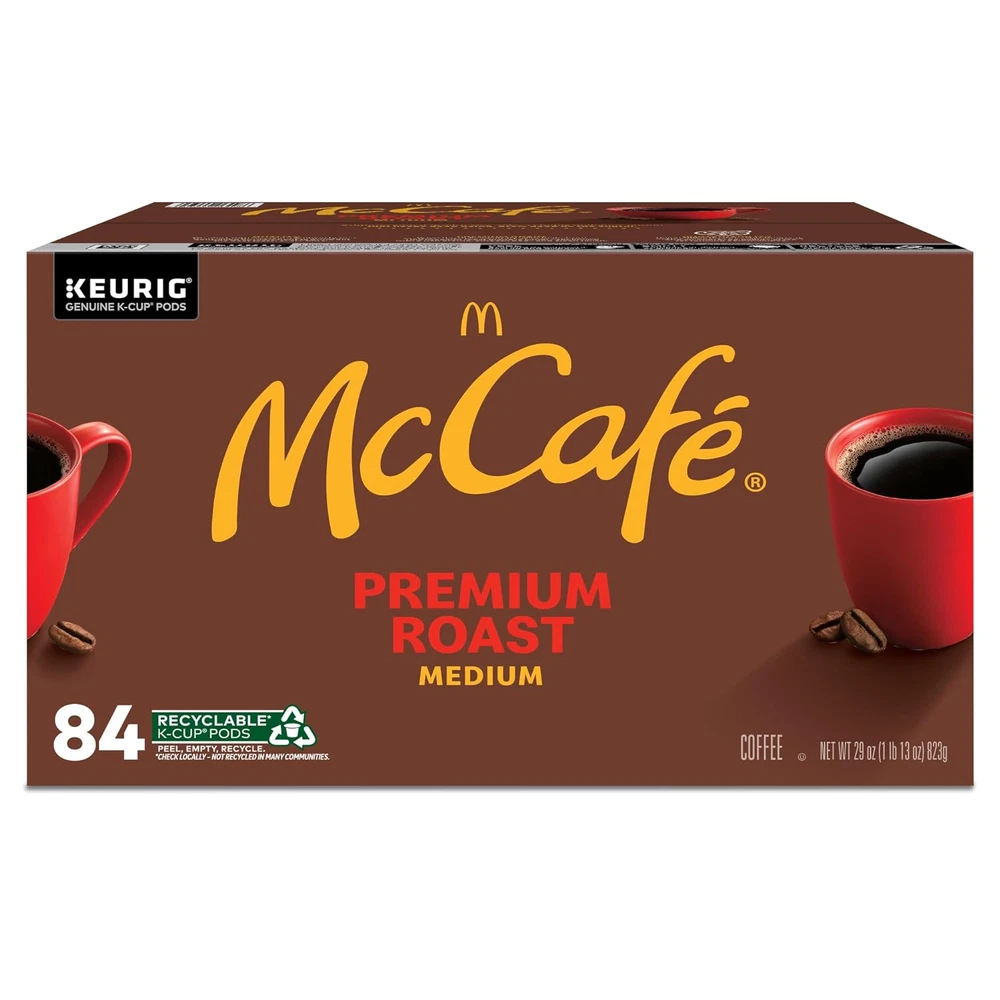 TASTE: Brew the deliciously familiar taste from McCafé into the comfort of your own home. This medium roast blend is simply satisfying with a rich aroma, smooth body and clean finish. ROAST: Medium Roast caffeinated coffee made with Arabica beans, and certified Orthodox Union Kosher RECYCLABILITY: Introducing McCafé Recyclable* K-Cup Pods. The same great taste, now made from recyclable material. *Check locally, not recycled in all communities SUSTAINABILITY: We use 100% Responsibly Sourced coffee to support a healthier planet and an improved quality of life for farming communities QUALITY: We start with premium Arabica beans, then expertly roast in a temperature-controlled environment to bring out the best taste, every time. COMPATIBILITY: Contains genuine K-Cup pods, engineered for guaranteed quality and compatibility with all Keurig K-Cup coffee makers Brew the comfortingly familiar taste of McCafé® Premium Roast and start your day in a surprisingly good way. This medium roast coffee blend is simply satisfying with a rich aroma, smooth body and clean finish. We start with 100% premium Arabica coffee beans, carefully harvested from the rich soils and mountainous regions of the foremost coffee-growing areas of the world. Then we expertly roast them in a temperature-controlled environment to bring out the best taste in every cup, every time. To keep the good going, we use only 100% Responsibly Sourced coffee. That means we support a healthier planet and an improved quality of life for farming communities. Not only are McCafé K-Cup® pods made from recyclable materials, they are recyclable.* Enjoy the freshly brewed flavor you’ve come to expect. And when you’re done, just Peel. Empty. Recycle. Each K-Cup® pod in this package contains medium roast, caffeinated ground coffee from 100% Arabica beans. They have been certified Orthodox Union Kosher. With this purchase, you can be assured you are receiving genuine single serve coffee K-Cup® pods; they have been engineered for quality and are compatible with all Keurig® K-Cup® coffee makers. Simple. Delicious. Brew good by the cupful.*Check locally, not recycled in all communities.