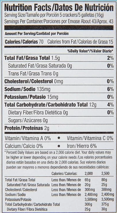Premium Saltine Crackers are topped with coarse sea salt. Enjoy premium Saltines dipped or crumbled into your favorite stews, soups or dips. Premium Saltine Crackers make a great light snack, especially when you add cheese or peanut butter. Premium crackers are kosher Dairy, contain no cholesterol, have 0 grams of trans fat per serving and no saturated fat (only 1.5g of total fat per serving).