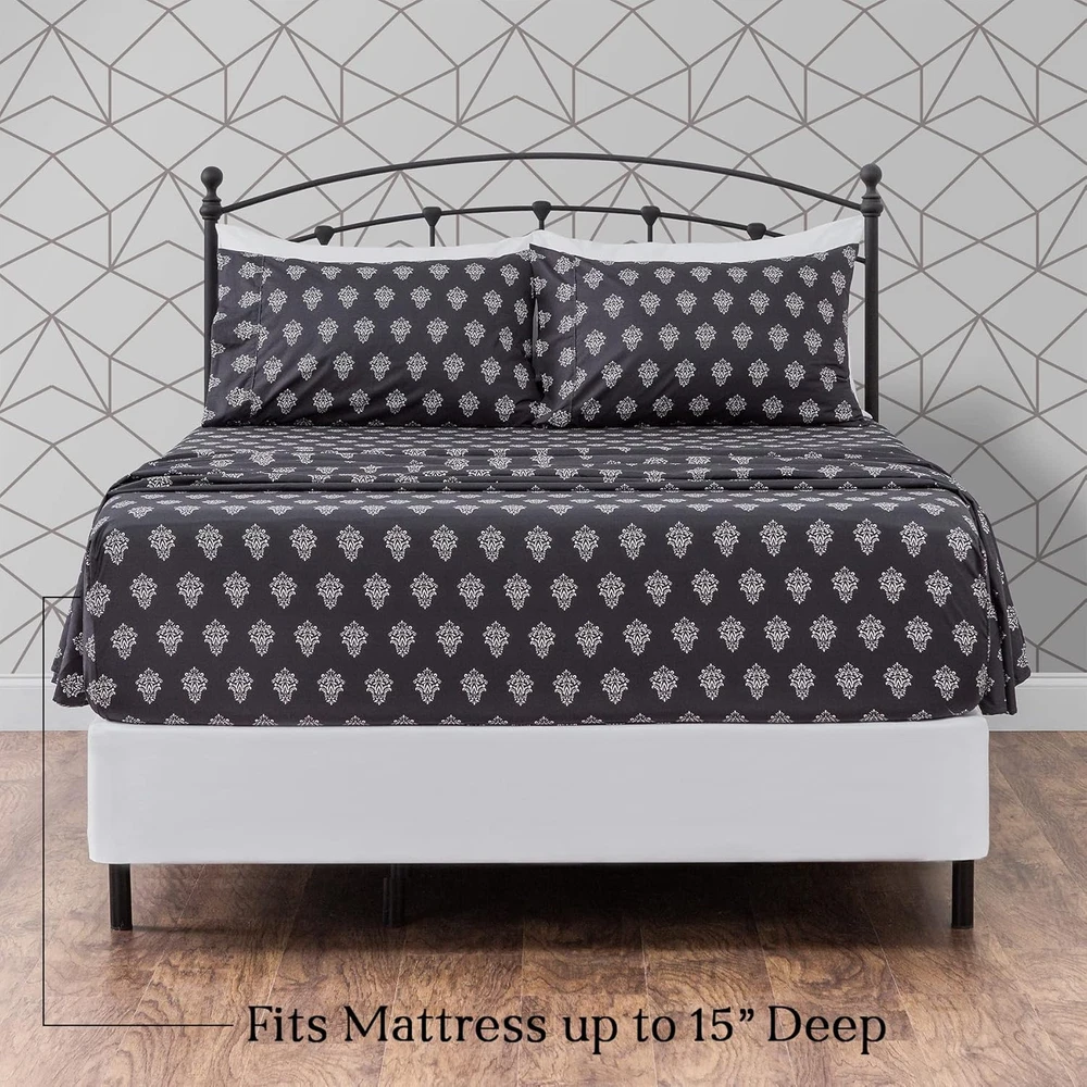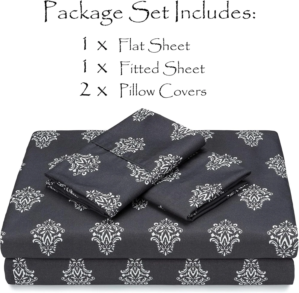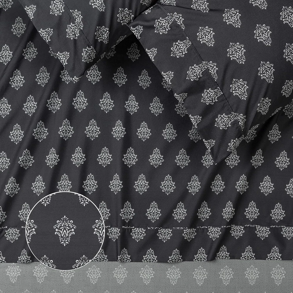 Premium Small Damask Printed Victorian Patterned Queen Bed Sheet Set 4-Piece - 1
