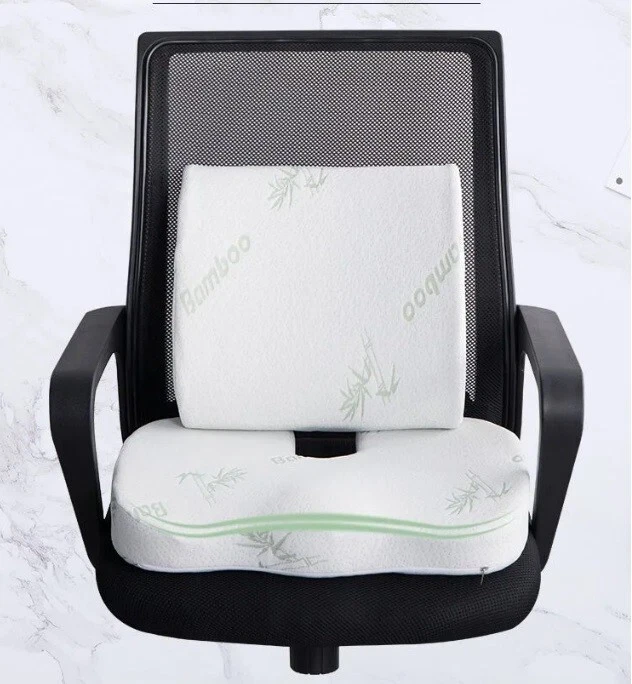 LUXURY PREMIUM BAMBOO FIBER SOFT MEMORY FOAM LUMBAR SUPPORT & PILLOW SET , ANTI-BACTERIAL •FABULOUS MEMORY FOAM: -The latest in memory foam shredded technology is used. •ANTIBACTERIAL BAMBOO MATERIAL: -The state-of-the-art bamboo material has inbuilt anti-bacterial properties, creating a clean, comfortable and healthy place. •HYPOALLERGENIC HEALTH BENEFITS: -Those with sensitive systems will adore this pillow, equipped with the natural hypoallergenic properties of bamboo allowing you to rest more comfortably free from the worry of irritating allergens. •WONDERFULLY COMFORTABLE: -This exceptional memory foam pillow can also help reduce pain. •EXPERTLY DESIGNED AND MANUFACTURED: -High-quality material and superb craftsmanship. Material: 40% Rayon from Bamboo + 60% Polyester + Memory foam Size: Lumbar support - 31.5 x 32 X 10 cm Pillow - 45 x 35X 7 cm Package Includes: 1x Memory Foam Lumbar Support Pillow 1x Memory Foam Seat Pillow LUXURY PREMIUM BAMBOO FIBER SOFT MEMORY FOAM LUMBAR SUPPORT & PILLOW SET , ANTI-BACTERIAL -The latest in memory foam shredded technology is used. •ANTIBACTERIAL BAMBOO MATERIAL: -The state-of-the-art bamboo material has inbuilt anti-bacterial properties, creating a clean, comfortable and healthy place. •HYPOALLERGENIC HEALTH BENEFITS: -Those with sensitive systems will adore this pillow, equipped with the natural hypoallergenic properties of bamboo allowing you to rest more comfortably free from the worry of irritating allergens. -This exceptional memory foam pillow can also help reduce pain. •EXPERTLY DESIGNED AND MANUFACTURED: -High-quality material and superb craftsmanship. 40% Rayon from Bamboo + 60% Polyester + Memory foam Lumbar support - 31.5 x 32 X 10 cm 1x Memory Foam Lumbar Supp
