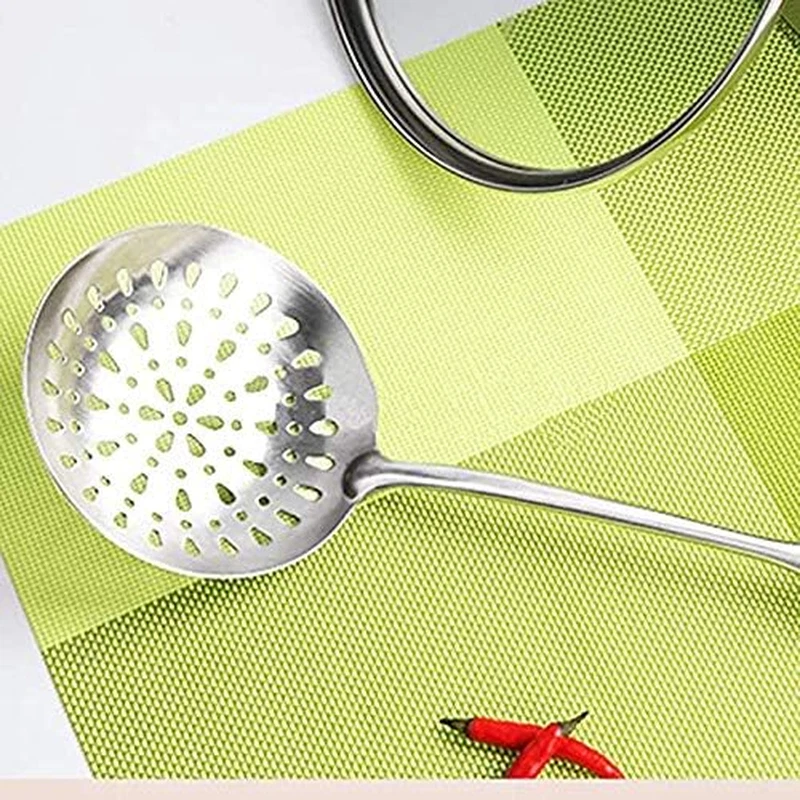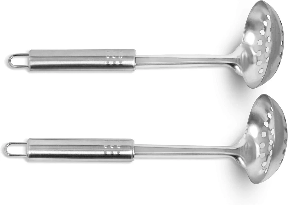 High Quality Material - Crafted from food-grade stainless steel, these utensils are safe, rustproof, and designed for long-lasting durability. They make excellent kitchen companions and are perfect for gifting to family, friends, or culinary enthusiasts during holidays and special occasions. Quick Separation of Hot Oil or Boiling Water - Ideal for preparing your favorite dishes such as french fries, vegetables, and meats, these utensils do not dissolve like plastic in hot oil. Their design allows for easy scooping, ensuring that excess liquid drains away effortlessly. Integral Forming - Both the turner and handle are constructed through integral forming of stainless steel, enhancing durability. The smooth surface prevents food residue buildup, making them easy to clean and dishwasher safe. Easy Storage - Each utensil features a small hole in the handle, allowing for convenient hanging on hooks for easy access and storage. 2 Pack Is Ideal - This bundle is perfect for those outfitting their kitchen, providing everything needed to keep any home chef satisfied and ready to cook! Simpli-Magic Stainless Steel Cooking Utensils are designed for both professional and home cooks, offering a perfect blend of functionality and style. With their high-quality construction, these utensils are suited for a variety of cooking tasks, from frying and sautéing to serving. The sleek stainless steel finish not only adds elegance to your kitchen but also ensures that these tools remain resistant to wear and tear over time.