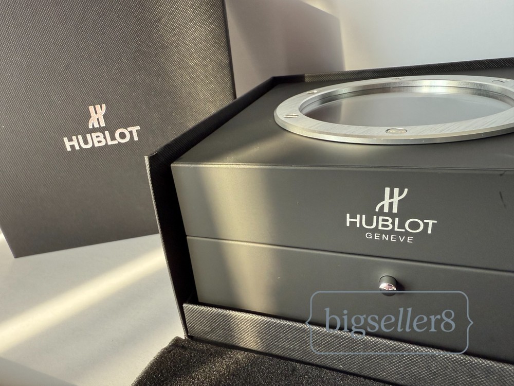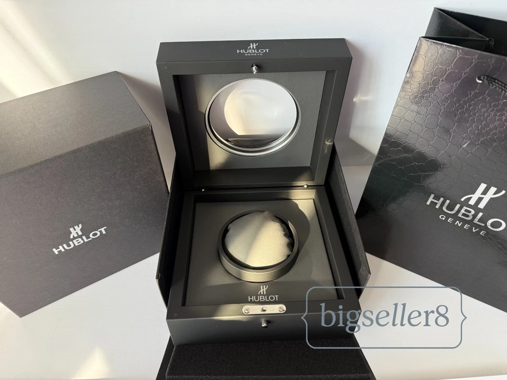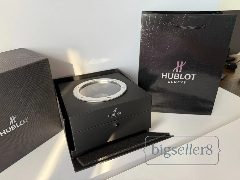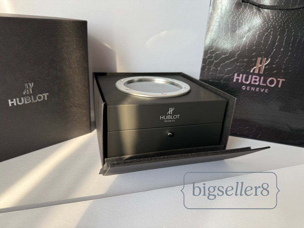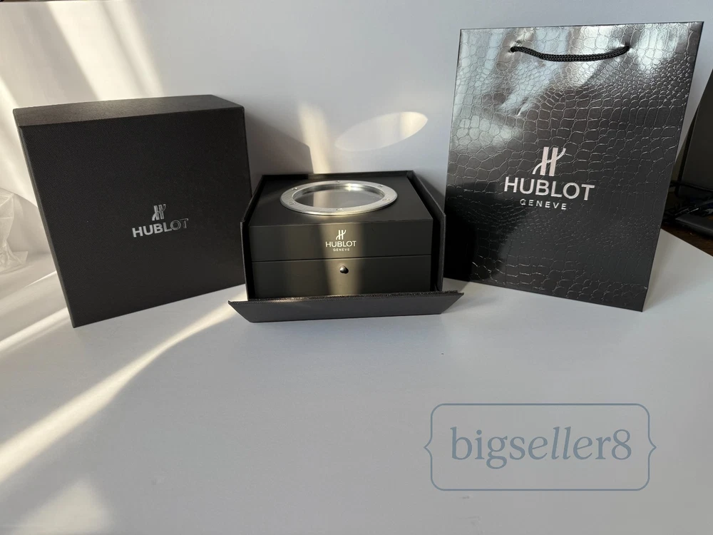 Hublot Watch Box with Shopping Bag – Like New Condition This listing is for an original Hublot watch box set , including the watch presentation box and Hublot shopping bag . Condition: Like new, shows no signs of use Includes: outer box, inner watch box, display cushion, and shopping bag Clean interior and exterior High-quality materials and solid construction Designed for Hublot watches and suitable for standard Hublot case sizes with original straps. ⚠️ Important: This listing is for the Hublot watch box and packaging only . No watch is included in this sale. Perfect for collectors, storage, display, or as a replacement box. Item will be securely packed for safe shipping. Feel free to message me with any questions.