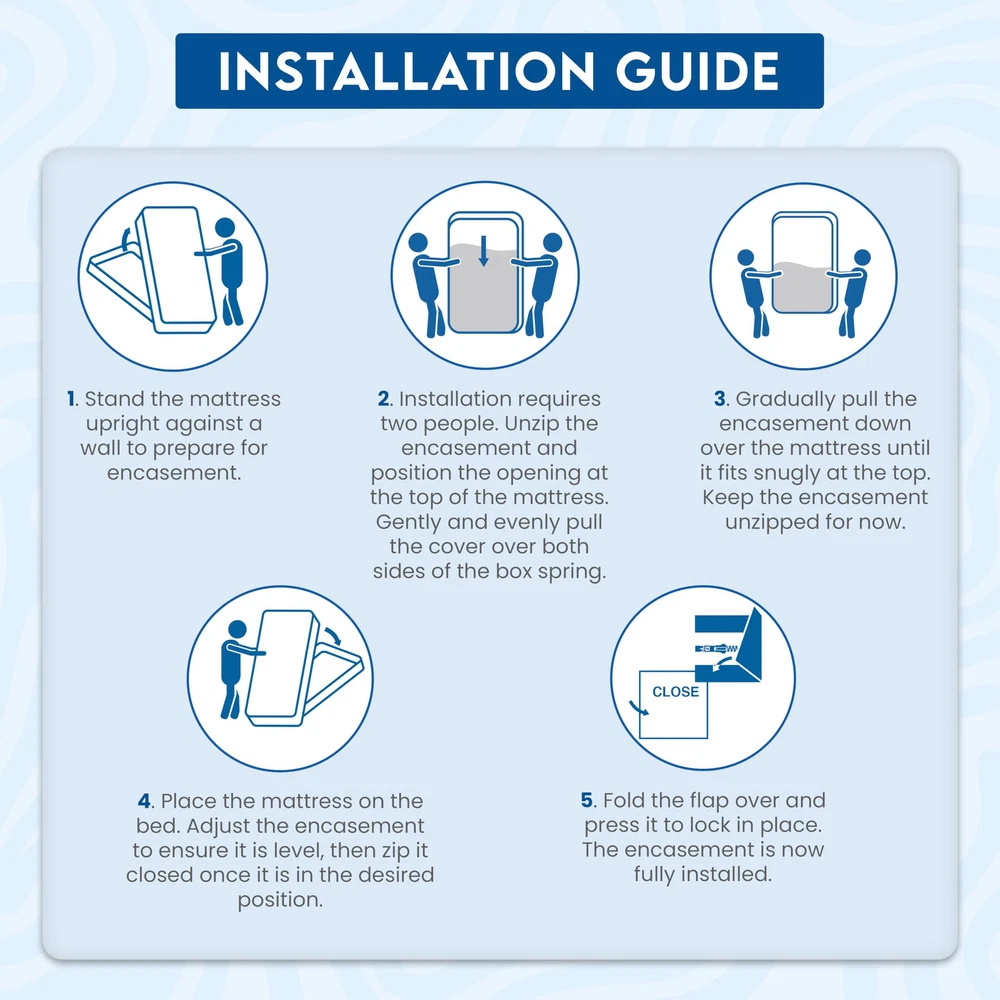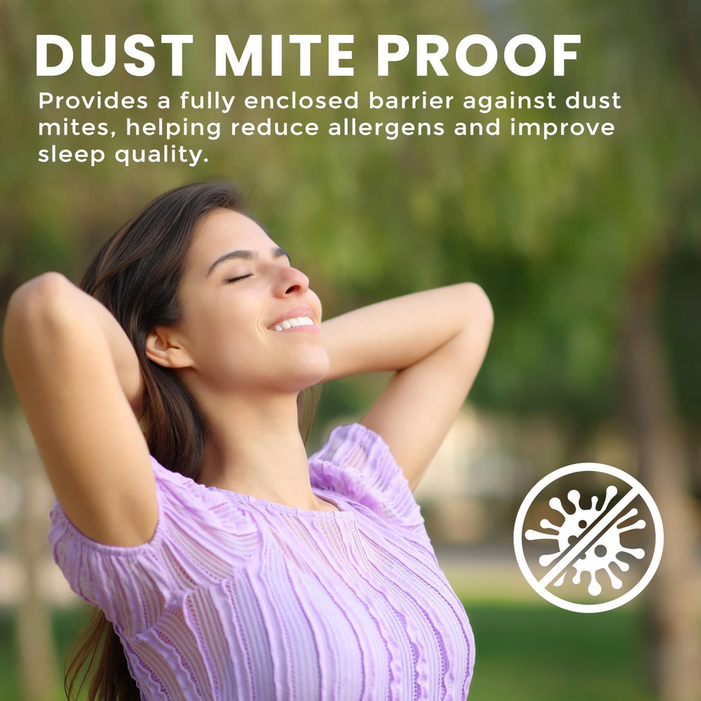 Perfect Fit: Our mattress protector zippered queen size bed option guarantees a snug fit for your mattress, accommodating depth up to 14 inches, so you can enjoy maximum comfort without any shifting or bunching. Ultimate Protection: Experience peace of mind with our bed bug mattress protector, designed with a zippered closure to keep your mattress safe from unwanted bed bugs and dust mites, ensuring a restful night's sleep. Top-notch Fabric: The high-end smooth knitted fabric ensures comfortable feel along with breathability as it doesn’t trap heat. The soft and quiet encasement becomes your ultimate choice. (Packaging may vary) Easy Maintenance: This mattress protector is not only bed bug proof but also designed for hassle-free cleaning, allowing you to simply toss it in the washing machine for quick and convenient upkeep. Versatile Protection: Our mattress protector is also a waterproof zipper mattress protector, offering dual protection against spills and stains while keeping your mattress in pristine condition.