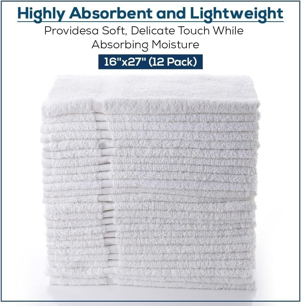 Cotton Hand Towels, 16"x27", 12 Pack, White 100% Cotton Made with 100% Cotton - These Hand Towels are Soft and Plush - Providing Great Absorbency and Quick Drying Includes 12 Towels - Use Them Anywhere Including: Bathrooms, Gym Bags, Guest Rooms - There Are Plenty For The Entire Household In This 12 Value Pack Hand Towels are the Perfect Length Measuring 16"x27" - Ideal for Nail/Hair Salons, Gyms, Businesses and Households Easy Care: Hand Towels are Machine Washable and Fast Drying Please Note that Cotton Does Have Lint Cotton Hand Towels, 16"x27", 12 Pack, White