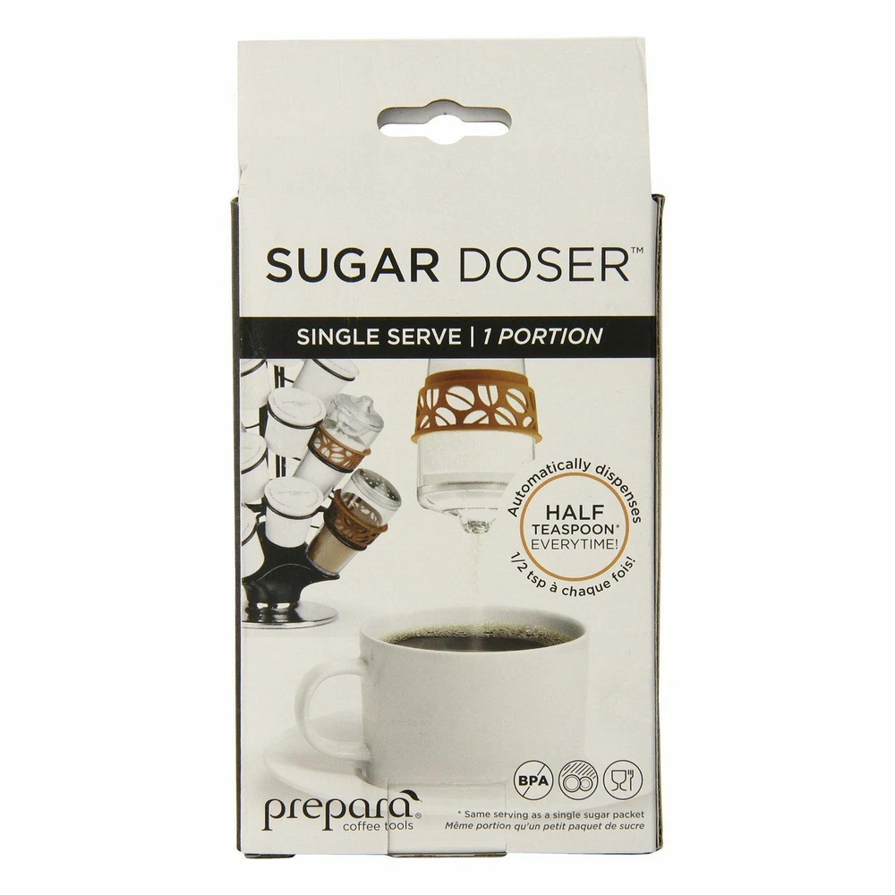 New in sealed boxes, free ship in US. Prepara Sugar Doser Single Serve This single serve sugar dispenser is the perfect companion to your single serve cup of coffee. It is designed to dispense a single dose of sugar at a time and nests comfortably in most Keurig carousels. Convenient, stylish and fun! Features: Can be stored in K-Cup Carousel Half teaspoon dose every time Same serving as a single sugar packet Calorie saving serving control Dishwasher safe BPA free plastic Convenient, stylish and fun Dimensions:2.2" x 2.2" x 4"