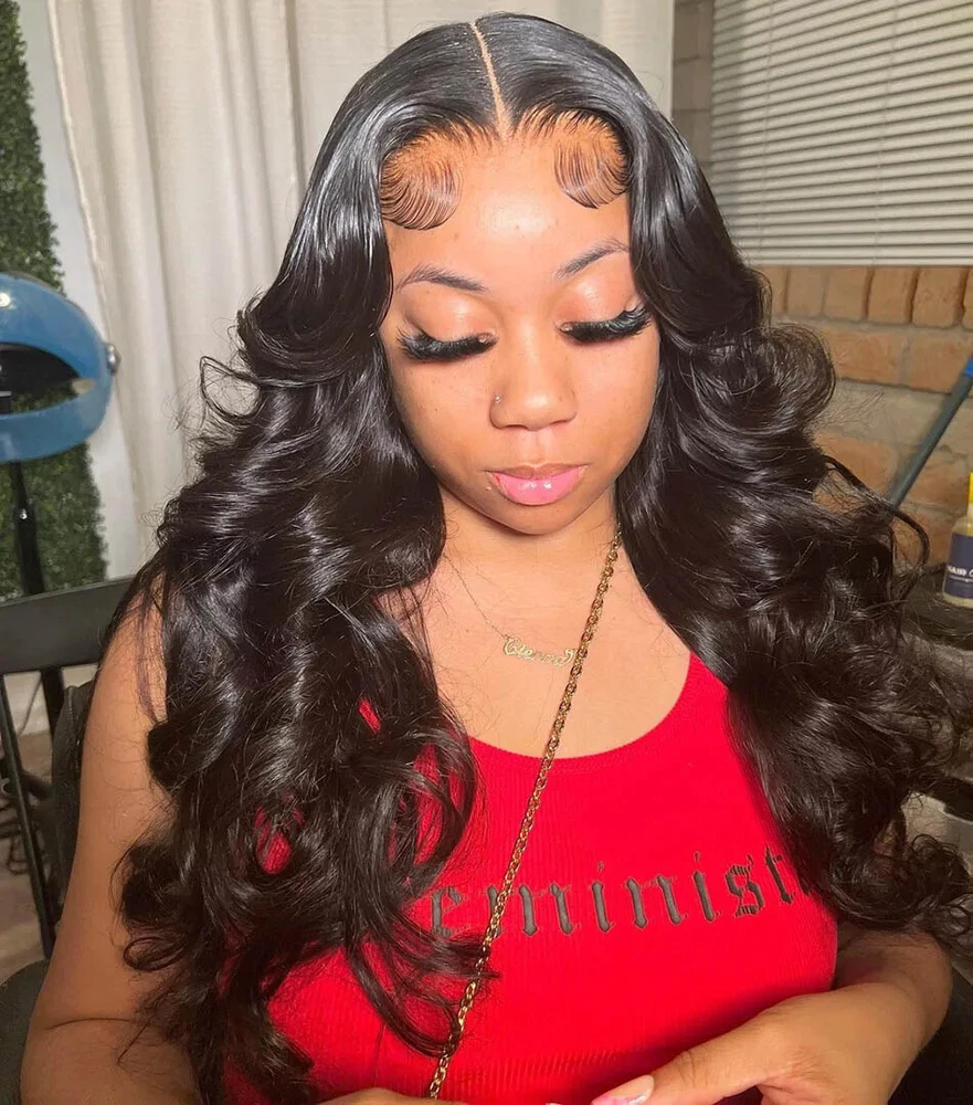 This wig is absolutely stunning! The hair feels so soft and natural, and it looks incredibly realistic right out of the box. I love that it's so easy to put on without any glue. The body wave pattern is gorgeous and gives me so much volume. It's definitely my new favorite!