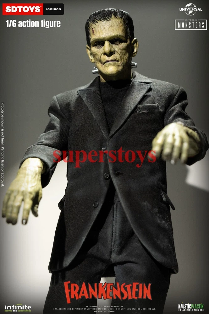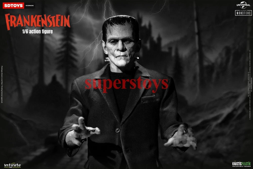 NOTE: This is a Presale Item Full payment is required for this presale. The release date automatically predicted by the eBay system is inaccurate, for more information about presale rules and item release dates, please feel free to contact me! Feel free to reach out if you have any other questions!!! Packing List: - One head with rollable eyes with Frankenstein's monster likeness 1931 - One Body aprox 32 cm tall with special knee articulation - 8 pair of hands - Black Jacket (Weathered) - Black Pants (Weathered) - Black Shirt - One pair of Black Boots (Magnetic) - Chains and handcuffs - Magnetic Stand - Luxury box
