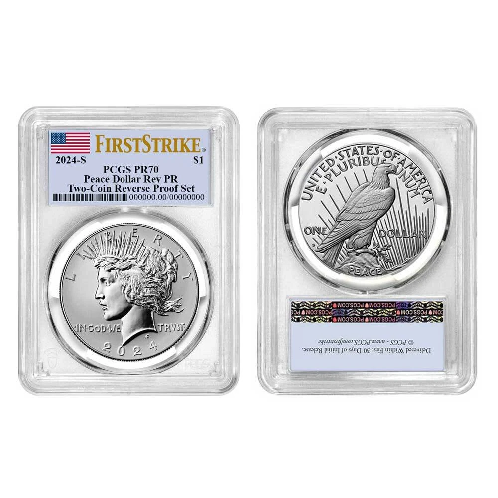 Free Shipping On All Orders Menu gold US Gold American Eagles American Buffalos Pre-33 Gold Gold Bars 1 oz Gold Bars Fractional Gold Bars Gold Rounds World Gold Coins Queen's Beast Series Canadian Maple Leafs S. African Krugerrands British Britannias Chinese Pandas Austrian Philharmonics silver US Silver American Eagles America The Beautiful 90% Silver 40% Silver Silver Rounds Silver Bars 1 oz Silver Bars 5 oz Silver Bars 10 oz Silver Bars Kilo oz Silver Bars 100 oz Silver Bars Silver Shot World Silver Queen's Beast Series Canadian Maple Leafs S. African Krugerrands British Britannias Chinese Pandas Austrian Philharmonics Mexican Libertads Australian Kangaroo's other Platinum Palladium Ancient Coins Error Coins Proof Sets Mint Sets Supplies and Publications auctions Store Categories Bullion Silver Eagles Gold Eagles Gold Buffalo Platinum Eagles First Spouse Gold Modern Commemoratives Ultra High Relief Pre-1933 U.S. Gold World Coins Error Coins Proof & Mint Sets Early U.S. Coinage Pre-33 U.S. Gold Morgan & Peace Silver $1 Dollars $1 Half Dollar 50c Quarters 25c Dime 10c Nickel 5c Small Cent 1c Supplies & Publications Original Government Packaging Ancient Coins No Reserve Auctions Other Store newsletter Add our store to your Favorites to receive our email newsletters about new items & special promotions. Sign up Presale - 2024-S Reverse Proof $1 Morgan and Peace Silver Dollar 2pc Set PCGS... Product Description Presale Item (Estimated Ship Date 12/06/2024) Please note if your order includes a presale item, the order will be delayed until the presale item becomes available for shipping. Shop confidently, knowing that when you make a purchase, you are buying the best. Each coin has been carefully assessed by the Professional Coin Grading Service (PCGS) and is certified to be in near-perfect condition. To protect their condition, these items are shipped in their original PCGS certification slabs. Coins arrive in protective slabs courtesy of the PCGS Free Shipping on all orders The coin pictured is only a representation of the coin you will receive, not the exact coin (serial numbers will vary) If you have any questions or concerns, please do not hesitate to contact us. Our dedicated Customer Service team will be happy to assist you M-F from 9 am to 5 pm EST. . Shipping Payment Returns About Us Shipping We offer free shipping on all of our listings! All items must be shipped directly to your registered eBay address, no exceptions. We will not ship it to an alternative or forwarding address. All of our packages are fully insured. Orders over $750.00 require Signature Confirmation. No insurance claim will be processed if the United States Postal Service or any other carrier designates the package as delivered via tracking number, regardless of circumstance. In general, we ship items using USPS First Class Mail or FedEx Ground. Other methods may be used depending on circumstance. eBay will post an estimated shipping time as soon as shipping information is uploaded to an order. This time frame is only an estimate, not a guarantee. Please be sure to verify that your order is correct prior to submitting payment. Once an order is placed it can only be canceled not adjusted. Orders are processed quickly and once they are moved to our shipping department an order can no longer be canceled, it would have to be returned (all returns are subject to restocking fees). Disclaimer: Once the item has left our facilities, it is under the control of the third party shipping service. We always do our best to provide our customers with speedy service; however some things are out of our control. There is always the possibility for a delay due to these third party services or the possibility of a product becoming damaged or lost in transit. The simple fact is, all of the above-described scenarios are unacceptable to us and we will never put this burden on our customers. If anything happens to a product in transit, we will always be willing to replace the product. Customer satisfaction is our number one priority and we do whatever we can to accommodate you. Pinehurst Coins will not accept purchases for any item that is mispriced due to technical issues, regardless if those issues are caused by eBay's system or our own. All mispriced orders will be canceled and your money will be completely refunded immediately. Payment For large orders with customers that we do not have a previously established business relationship, a wire may be necessary. This will be determined at the discretion of Pinehurst Coins. Payment is due at the time of checkout, no exceptions. We do not offer discounts unless it is otherwise posted on our listing. Some listing will provide you with a bulk purchase discount. Please see individual listings for details. Placing an order locks in your price. We do not offer price adjustments on our items. Both the precious metals and numismatic markets can be volatile and change on a regular basis. Placing your order locks in your price and this price cannot be adjusted. We will not charge you additional money if the price goes up therefore if the price goes down we do not credit you the difference. Returns Pinehurst Coins offers its customers a return and/or exchange policy on everything we sell, WITH THE EXCEPTION OF BULLION ITEMS. If you are not completely satisfied with your purchase, please call 910-235-COIN (2646) or contact us via eBay's message system to discuss your concerns. We always do our best to satisfy our customers. Returns are accepted for 14-days from the date the customer receives the item(s), provided that all items remain in their original packaging and you notify Pinehurst Coins via phone or eBay message system within the 14 day period. Items removed from the original packaging cannot be returned. Note that shipping and handling charges will not be refunded. If you must return an item, please contact us at 910-235-COIN (2646) and a customer service representative will instruct you on ho