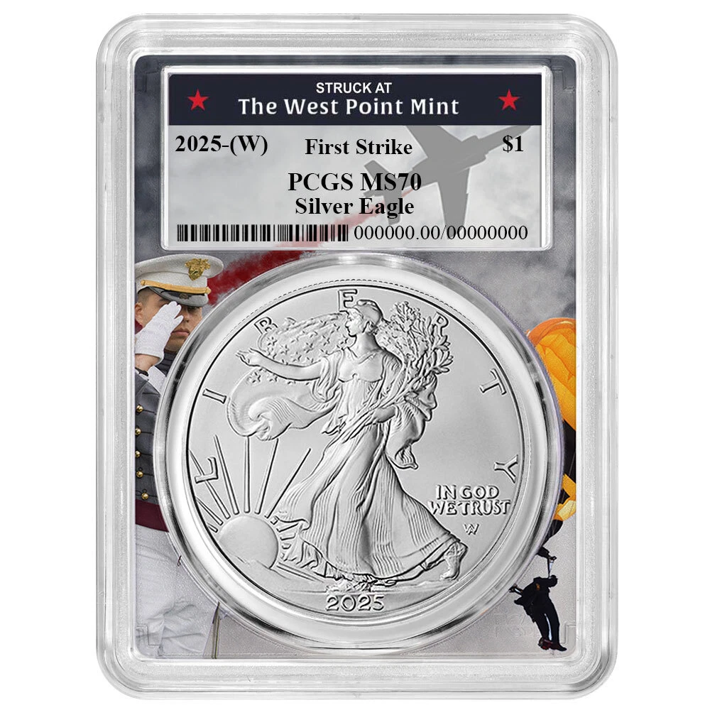 eBay Modern US Coins World Coins Classic Coins Ancient Coins Morgan Silver Dollars Foil Notes Bullion Gold Coin Sets Shop Categories Modern US Coins World Coins Classic Coins Ancient Coins Morgan Silver Dollars Foil Notes Bullion Gold Coin Sets Presale - 2025 (W) $1 1-oz American Silver Eagle PCGS MS70 FS West Point Frame Item Description Presale Item (Estimated Ship Date 1/24/2025) Please note if your order includes a presale item, the order will be delayed until the presale item becomes available for shipping. The American Silver Eagle: A Popular Bullion Coin The American Silver Eagle is one of the world’s most popular silver bullion coins. Authorized by the Liberty Coin Act of 1985, these coins are made from one troy ounce of .999 fine silver and first went into production in 1986. The U.S. Mint introduced a redesign in 2021. The obverse (heads side) design is based on Adolph A. Weinman’s “Walking Liberty” half dollar from 1916. Modern technology allowed for a more accurate reflection of Weinman’s original design, including the addition of his artist’s mark. The reverse (tails side) originally featured the American heraldic eagle designed by John Mercanti, the former Chief Engraver of the U.S. Mint. This design showed a bald eagle behind a shield, clutching arrows and an olive branch. The new “Eagle Landing” design depicts an eagle carrying an oak branch towards a nest. This design was created by Emily Damstra, one of the artists participating in the U.S. Mint’s Artistic Infusion Program. ModernCoinMart offers only the finest certified coins, ensuring you get the very best. Every single coin has been carefully evaluated and authenticated by the prestigious Professional Coin Grading Service (PCGS). Buy with confidence knowing you’re getting a top-quality piece from a reputable dealer. Each coin is secured in its official PCGS slab, offering superior protection Free Shipping on all orders The pictured coin is a representation only. The coin you receive may have variations, including a unique serial number. We are here to help. If you have any questions, our friendly customer service team is just a phone call away. Reach out to us Monday through Friday, 9am to 5pm EST. Don’t let this opportunity slip away! Add this PCGS-certified coin to your collection today. Terms International Returns/Cancellations About Us Terms Payment Precious metals markets are fluid therefore immediate payment through eBay is required at time of purchase for all listings. Buyer is locked in at the price at the time of sale. We cannot make any price adjustments after the sale is complete. Prices can continuously change up or down until the point of payment. Shipping Signature is required on all invoices over $750. Final shipping methods are chosen at the discretion of our shipping department. Listings MCM will not honor any sale where a typographical or computer error is made as determined by either us or by eBay. Product Photo Policy: MCM attempts to display product images shown on the site as accurately as possible. We take all of our photos in house and due to reflections on the mirrored or proof surfaces of a coin there may appear to be 'black' when there is not. If a coin has a color on it at all it will be described as 'colorized' in the description or title. Due to the large inventory we sell, we use stock photos. Serial numbers will vary from the image shown unless specifically stated in the product listing that the item pictured is the item you will receive International INTERNATIONAL ORDERS POLICY: We are accepting international orders through ebay's International Shipping Program. Any additional import duties, customs fees, shipping/handling charges or taxes are not included in the item price or shipping cost. These charges are the customer's responsibility. Please check with your country's customs office, postal office or local UPS office to determine what these additional costs will be prior to purchasing. We only use UPS and FedEx as our couriers and we can ONLY ship to your eBay registered shipping address. We do not ship to any other address that is not listed on eBay, or to any shipping companies, storage units, etc. Returns/Cancellation Returns/Cancellations The Company encourages you to examine your purchase immediately upon receipt, and call our toll free number at 1-800-362-9004 during Customer Service hours in the event of any issues or concerns. Bullion Items Non-Returnable, Final Sale ALL BULLION ITEMS ARE FINAL SALE. Due to the volatile nature of the bullion market all gold, silver, platinum and palladium bullion sales are final. You may cancel your order, however all cancellations will be subject to any market loss as described in our Market Loss Policy. Market Loss Policy Upon placing your order the transaction becomes a binding agreement, whether buying or selling. Your price becomes locked-in as soon as you click “place order” during the checkout process. If you cancel your order once placed, any amount refunded will be offset by our current buy price. For additional clarity, you will be responsible for any loss in value incurred during the cancellation process Refunds of non-bullion items are for the cost of product only; shipping and handling charges are not refundable, unless otherwise stated by Company. Company will refund the purchase price to the customer in the same manner in which the original purchase was made, i.e., credit card purchases will be credited back to the credit card used. An balance due and owing on a returned item will be deducted from the refunded amount prior to crediting the customer's account. Beyond the 14-day return period, Company is under no obligation to accept return of any product, but may in its discretion do so pursuant to this policy, for up to one year from the invoice date. About Us ModernCoinMart (MCM) was launched in 2004 and quickly set the standards for online sales of bullion, US coins and world coins. Join over 100,