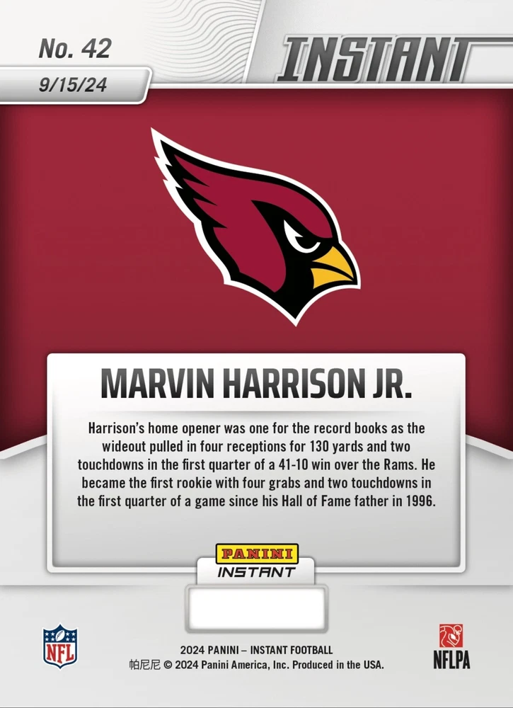 THIS IS A PRESALE ORDER SET FOR 40 DAY DELIVERY. Please see the GRADED GEM-MT 10 VICTOR WEMBANYAMA 2023 PANINI FIRST LOOK RPS-1 and CAITLIN CLARK DRAFT DAY ROOKIE in the listing to see what your card will look like Graded! You have the option of the BASE Ungraded Card or a Graded GEM-MT 10! PLEASE BE SURE TO CLICK ON THE CORRECT ITEM THAT YOU WANT We have many more cards that aren't listed so feel free to ask if we have other items you are interested in. JDCC Authorized & Inspected AUTHENTIC MEMORABILIA Micro Graded Marvin Harrison Jr 2024 Panini GRADED GEM-MT 10 Rookie CARD #42! COA! Cards are Professionally inspected, encased and sealed by JDCC - JD’S Coins & Collectibles Inc.! This item is encased in a Crystal Clear Slab with tamper proof #'d hologram sticker and Certificate of Authenticity marked label for extra security and authenticity! The matching SERIAL #’D JDCC COA will accompany this item. Any tampering or removal of the hologram labels will void the JDCC grading authenticity of the item encased. For further protection the case is fitted with a plastic sleeve. It is best to keep the item in the plastic sleeve to protect the slab from any scratches, etc. This is a beautiful product for display and safekeeping! PLEASE FOLLOW OUR STORE FOR NEW INVENTORY & EXCLUSIVE OFFERS! I combine shipping at .50 cents per additional item capped at $9.99. International rates are $14.99. Feel free to send me offers for multiple items and qualify for discount shipping rates and lower costs per item! I send daily invoices every morning so be sure to wait for your combined shipping invoice before checkout or request an invoice when you are ready to pay. Please keep in mind shipping and handling fees don't just cover postage but also ebay/paypal fees, supplies, taxes and other costs. 5 Star feedback is Greatly appreciated and FOLLOW our store for New Inventory! Good luck and enjoy!