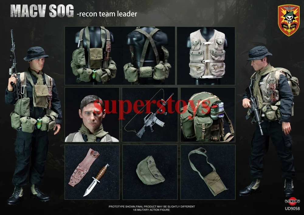 NOTE: This is a Presale Item Full payment is required for this presale. The release date automatically predicted by the eBay system is inaccurate, for more information about presale rules and item release dates, please feel free to contact me! Feel free to reach out if you have any other questions!!! Packing List: 1X Head Sculpture 1X Body W/ Relaxed Hands 1 Pair Gun Holding Hands Costume: 1. CISO Bonnie Hat 2. GI Undershirt 3. Dyed Black Tropical Combat Uniform 4. 1 Pair Jungle Boots Accessories: 1. STABO Suspenders 2. M1956 Pistol Belt 3. M1956 Water Canteen Cover X5 4. Modified 1956 Canteen Cover 5. M1956 First Aid/Compass Pouch 6. Modified Claymore Mine Bag 7. Triangle Bandage X2 8. Tropical Rucksack 9. XM28 Gas Mask 10. M2 Medic Pouch 11. 1-0 Vest 12. M1956 Water Canteen X4 13. O Rings X2 14. Seiko Watch 15. Air Crew Survival Knife Sheath 16. Tape Weapons: 1. XM177E2 Carbine 2. Modified Foregrip 3. M16 Mags (20 Rounds) X10 4. M16 Mag (30 Rounds) X1 5. M18 Grenades X3 6. WP34 Grenade 7. Air Crew Survival Knife