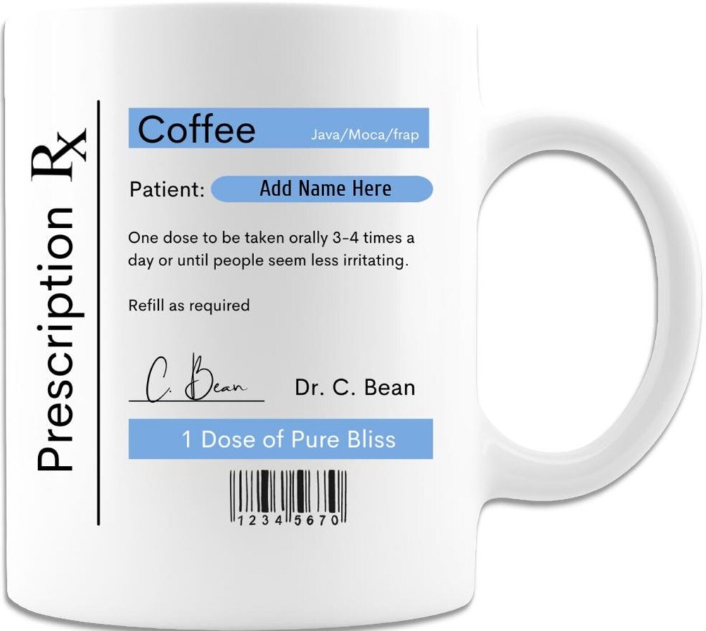 Prescription Coffee Mug Dr Or Nurse Mug Product Details.. This high quality 11oz. ceramic white mug has a premium hard coat that provides crisp and vibrant color reproduction sure to last for years. Perfect for all hot & cold beverages. The highest quality printing possible is used. It will never fade no matter how many times you wash it. Material: 100% Ceramic. Print both sides. Dishwasher and Microwave Safe. High Gloss + Premium White Finish. Printed in the U.S.A. Personalized & Custom. We support personalized and custom mug to add custom, when placing an order, you can add notes to the "order note" in shipping address section. Also you can contact us directly via message. Shipping Info. Ready to ship in 1 to 2 business days, All products are made-to-order and proudly printed in the United States. Shipped by USPS and DHL, You will receive your order in 5-7 days. Replace & Refund. All products are defective during shipping broken, chipped will be replaced free of charge. You are not satisfied with the product, we will refund 100% money to you. If any other issues arise, please do not hesitate to message, we would be more than happy to assist you.