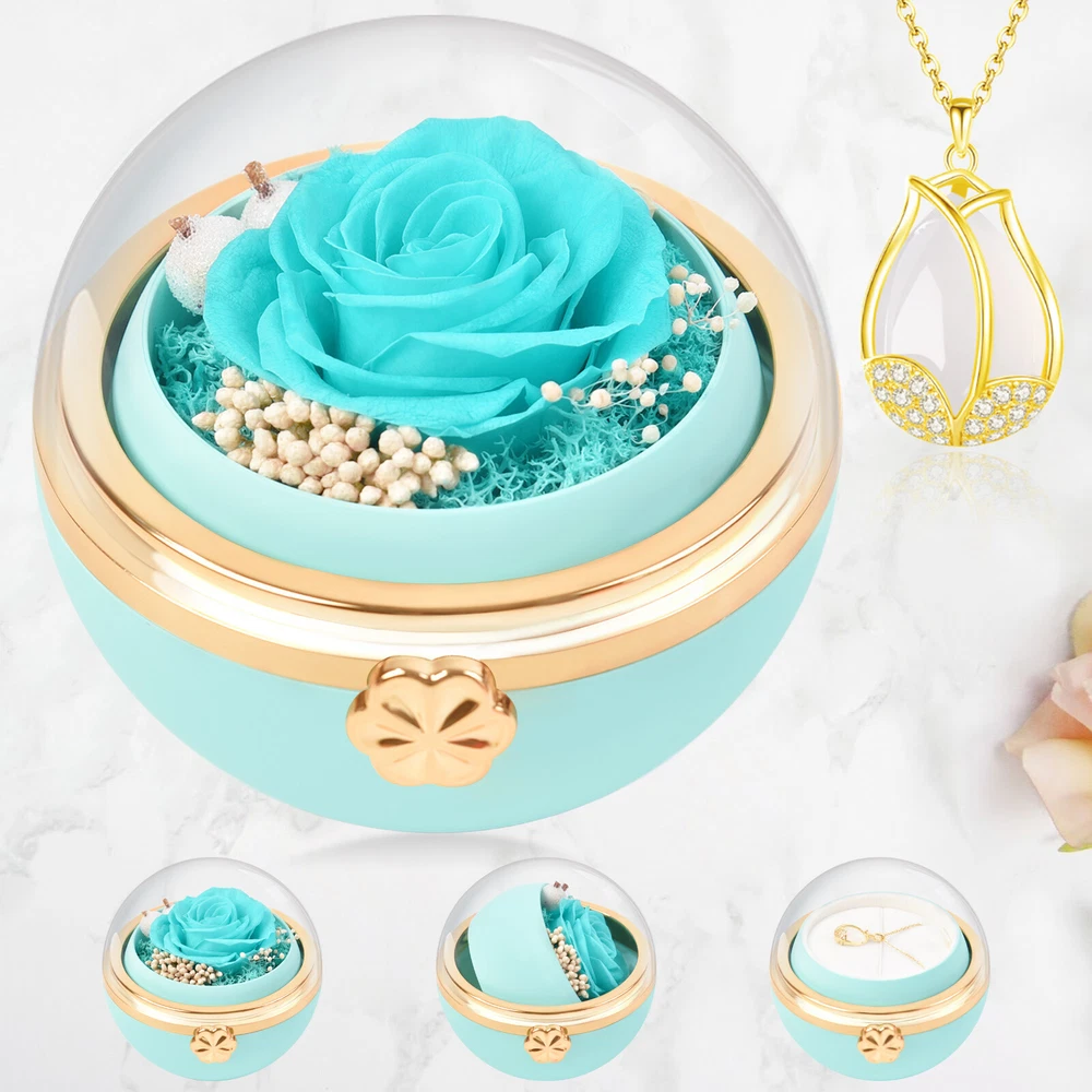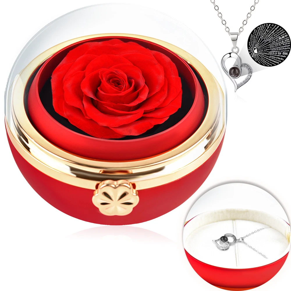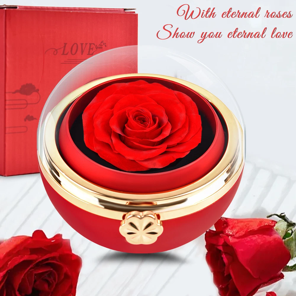 Preserved Flower Jewelry Box Rotating Rose Ring Necklace Valentine's Day Gifts
