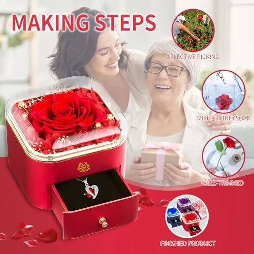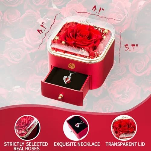 Return Policy Fast Delivery Trusted seller Preserved Flower in A Box -Preserved Rose Last for Over 1 Year Gift for Wife Girlfriend Daughter Valentines Day Mothers Day Anniversary Day Birthday Christmas - Eternal Rose Gift (Red) Product Description Presvered rose and necklace : Our preserved roses are crafted with real roses by special technology to maintain their natural beautiful and ensure that they remain lively and beautiful for 1-5 years. Romantic gift for women : such as wife, girlfriend, mother, sister, grandmother, etc. They are unique and meaningful ways to express grateful and affection for the special people in your life. Elegantly display : Whether you're celebrating Valentine's Day, Mother's Day, Anniversary, birthday, Christmase, marriage proposals or expressing love, preserved rose gift is the perfect embellishment. Colors Options : Red, pink, purple and blue. You can choose different colors according to your preference. T is no better way to express your love than with a box of timeless flowers. Store flowers for lasting beautiful : Please keep it at room temperature without water or direct sunlight to maintain the quality. Immediately on"Add to cart" as a great gift to her. Shipping Returns Payment Shipping Shipping is FREE to all addresses other than APO/PO boxes in the lower 48 states. All our stock ships from US-based warehouses. Shipped via USPS or UPS (depending on location and package weight) Unless stated otherwise, all orders will ship within 24-72 hours of your payment being processed. Check our feedback to see the great reviews of FAST shipping we offer. Returns Seller does not accept returns Payment We currently accept payment via eBay managed payments only. Once payment is cleared, we will dispatch your shipment within 1-3 business days. Please refer to the "Shipping" tab for more information regarding shipping speed to your destination.