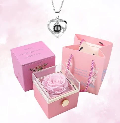 Return Policy Fast Delivery Trusted seller Preserved Flowers with Necklace Romantic Rose in Gift Box for Women Christmas Her Sister Birthday for Mom Wife Daughter and Special Occasions Pink Product Description THE PERFECT GIFT FOR ANY WOMAN – Whether it’s for your mom, wife, daughter, or best friend, this preserved rose and elegant "I Love You" necklace make the perfect gifts for women for any occasion. ETERNAL BEAUTY THAT LASTS – Our preserved flower never wilts or fades, symbolizing everlasting love. Displayed in a luxurious, peach-skin texture box, this gift is as timeless as your feelings. A SURPRISE LIKE NO OTHER – Turn the handle and reveal a stunning heart-shaped necklace with "I Love You" in 100 languages. A touching surprise d to make her smile! ADD TO CART NOW. ELEGANT PACKAGING INCLUDED – Ready to gift! This rose comes beautifully packed with a premium acrylic cover, a lovely gift bag, and a special message card. No need for extra wrapping! A TREASURED MEMORY – This preserved rose is more than just a gift. It's a keepsake, a lasting memory of your love, perfectly suited for birthdays, anniversaries, or Mother's Day. Shipping Returns Payment Shipping Shipping is FREE to all addresses other than APO/PO boxes in the lower 48 states. All our stock ships from US-based warehouses. Shipped via USPS or UPS (depending on location and package weight) Unless stated otherwise, all orders will ship within 24-72 hours of your payment being processed. Check our feedback to see the great reviews of FAST shipping we offer. Returns Seller does not accept returns Payment We currently accept payment via eBay managed payments only. Once payment is cleared, we will dispatch your shipment within 1-3 business days. Please refer to the "Shipping" tab for more information regarding shipping speed to your destination.