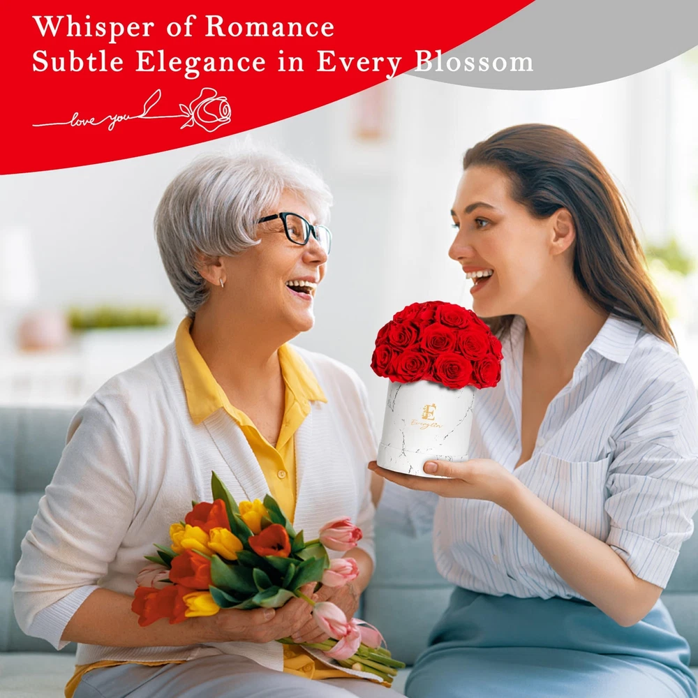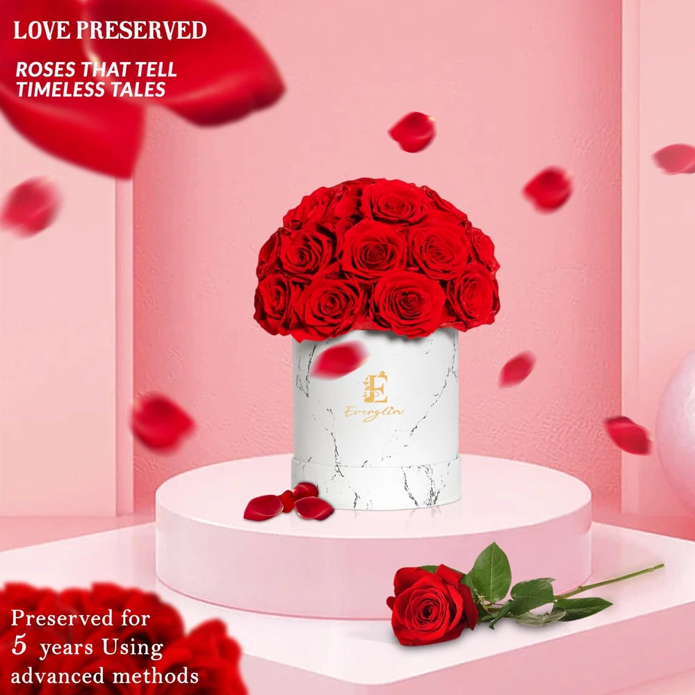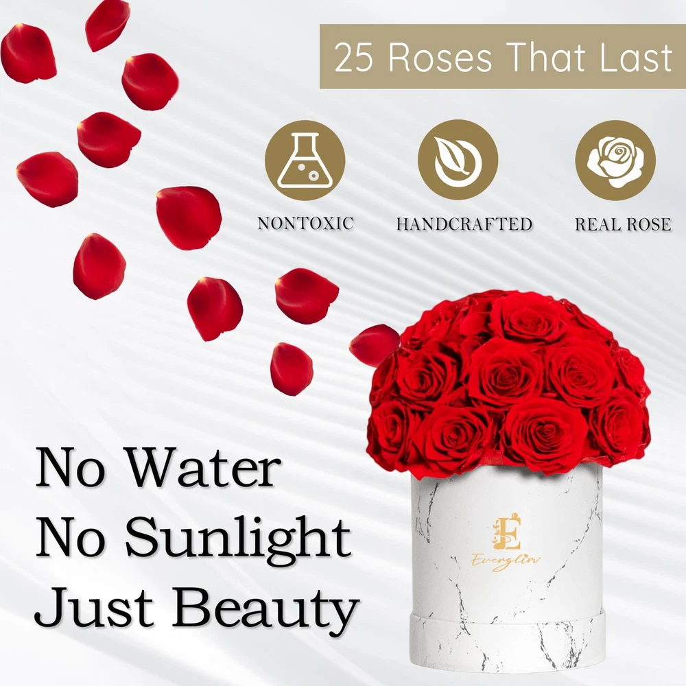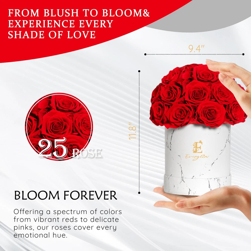 Preserved Roses Flower Box -Round 25 Piece Handcrafted, Naturally Preserved Elegance -Flower Bouquet for Women - Ideal for Birthdays, Anniversaries, Valentines (Red) Product Details Color: Red Brand: Everglim MPN: mushroom01 UPC: 765083965263 EAN: 0765083965263 Product Dimensions: 11.9 x 9.5 x 9.5 inches Item Weight: 1.21 pounds Manufacturer: Everglim Country of Origin: China Item model number: mushroom01 Date First Available: November 29, 2023 Elegant Eternal Roses Bouquet Designed to help express your love and devotion to someone special each forever roses box features 25 small roses with rich, vibrant petals creating a gorgeous bouquet that looks like a professional florist arrangement. Stunning Home or Event Decor Our hand-selected preserved roses in a box look amazing in your kitchen, living room, office, or bedroom and provide year-round beauty that can last up to 3 years to add natural beauty to your favorite spaces. Gorgeous Vibrance and Color These preserved roses arent fake or artificial which means they boast deeper, more vivid hues that maintain their color and soft look throughout every season. They also dont need water or direct sunlight for easy care. Organically Preserved Arrangement Handpicked and arranged by genuine florists these are the perfect romantic gifts for her because theyre everlasting and carefully preserved to keep them looking freshly picked like they just came from outside. Must-Have Personal Gift Bundle These stunningly preserved real roses make excellent gift ideas for moms, sisters, wives, and best friends. Get them for birthdays, Mothers Day, an anniversary, Valentines Day, Christmas, and special holidays.