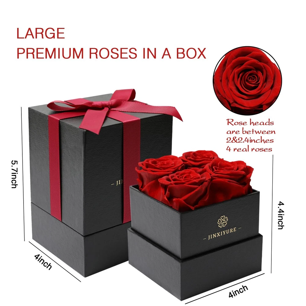 Preserved Roses in A Box-Flowers for Delivery Prime-Mothers Day Roses in a Box, Forever Preserved Roses Gift for Mom, Birthday Gifts for Women Mom/Girlfriend/Wife/Grandma RED 4 Product Details Product Dimensions: 6.2 x 4.3 x 4.3 inches Item Weight: 10.5 ounces Country of Origin: China Item model number: ED-4 Batteries required: No Preserved RosePreserved Rose is a symbol of eternal love, 100% handmade real nature fresh flower processed through unique preservation method, Eternal Flower Expresses your Eternal Love to your Loved one Mothers Day GiftsPerfect gifts for mom from daughter and son, bonus mom gifts, to be mom gifts for mothers day, valentines day, christmas, thanksgiving, birthday i love you gifts for mom Forever Fresh Roses: 100% Real Roses.These roses professional dehydration through complex process, and their qualities have been preserved to last 3-5 years, with no maintenance or watering required. Perfect Gifts for HerThe Most Romantic Surprise Gifts for Wife, Girlfriend, Mother, Daughter, Grandma on Valentine's Day, Mother's Day, Christmas, Thanksgiving, Wedding, Anniversaries, Marriage Proposals, New Year's Day, Birthday or other Holiday Occasions Gift ideas for Women Elegant Display Box: Housed in a durable Hexagon shape box, our preserved flowers make a great valentine decor. Keep it at room temperature without water and direct sunlight exposure to maintain the quality.