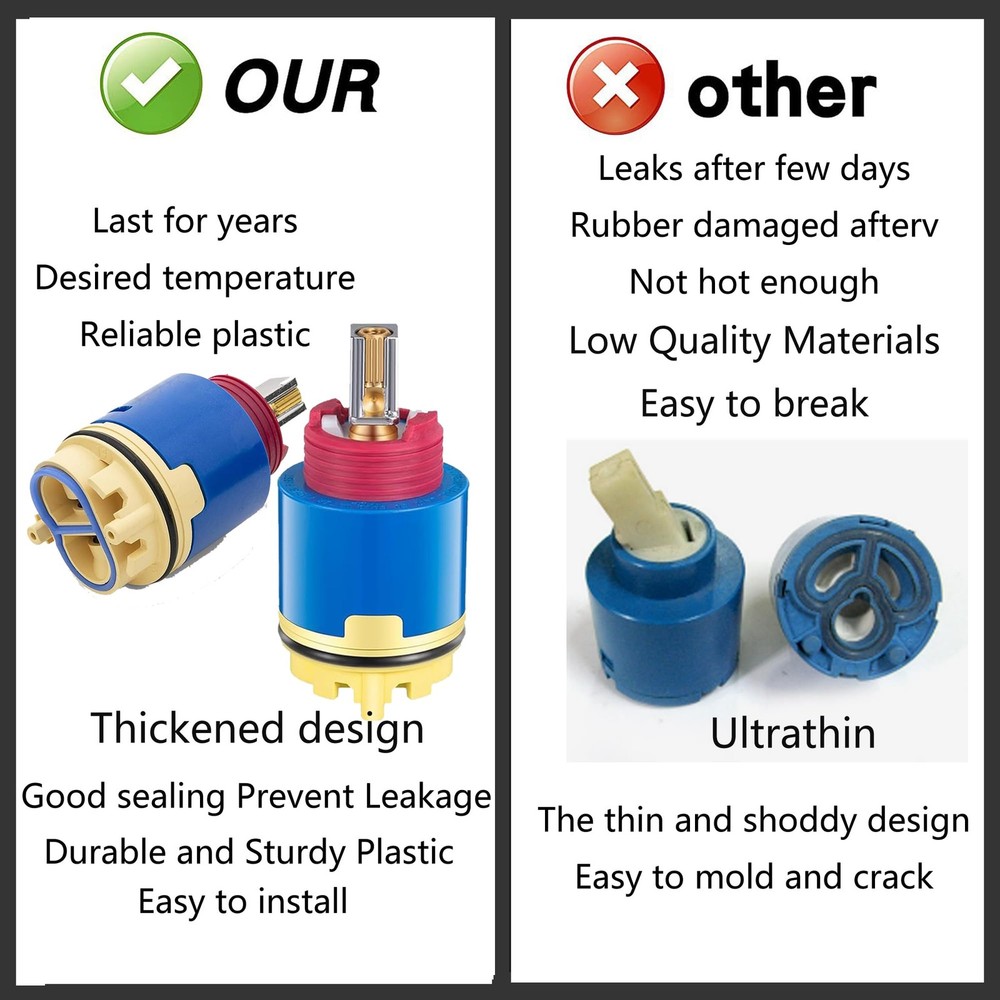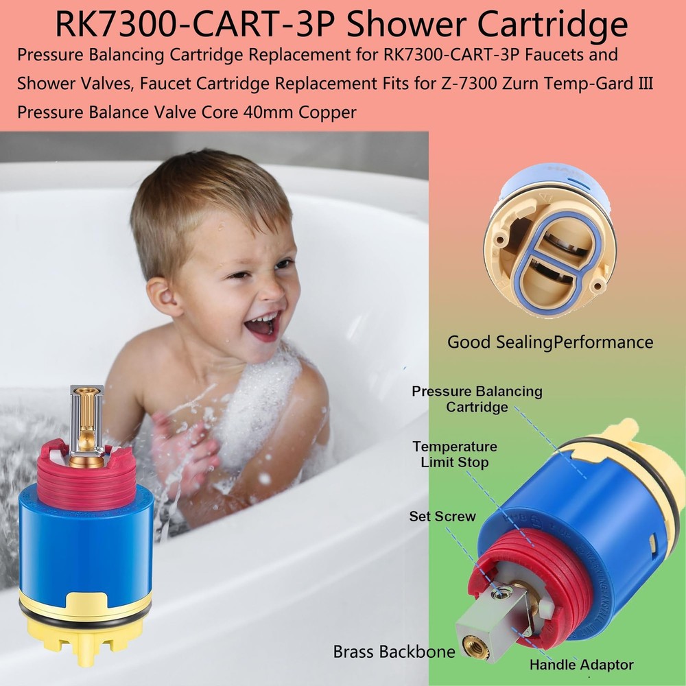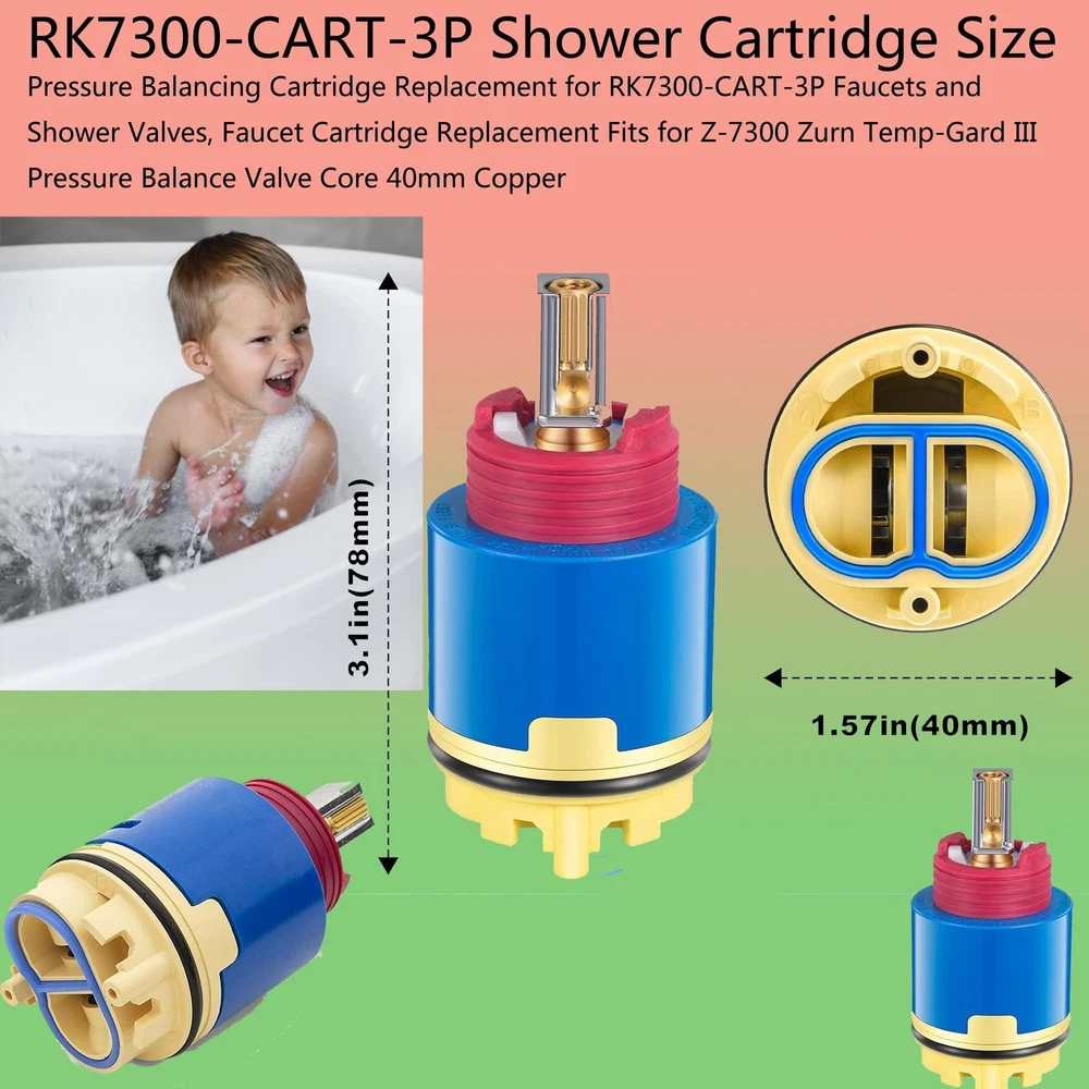 Faucet Cartridge Replacement 40mm Diameter Shower Cartridge,Fits for Replaces Cartridge on Many Brands Shower and Tub Cartridge,Compatibility: This Pressure Balancing Cartridge is replacement for RK7300-CART-3P, fits perfectly for Z-7300 Zurn Temp-Gard III Faucets and shower valves. ⛳Compatibility: This Pressure Balancing Cartridge is replacement for RK7300-CART-3P, fits perfectly for Z-7300 Zurn Temp-Gard III Faucets and shower valves. ⛳Precision in Size and Functionality for Confidence: Faucet Cartridge Replacement 40mm Diameter Shower Cartridge,Fits for Replaces Cartridge on Many Brands Shower and Tub Cartridge,With a precise 40mm diameter, this replacement cartridge guarantees an accurate fit for your bath tub or shower faucet. Trust in the correct sizing and compatibility to provide a solution that works seamlessly, instilling confidence in your shower system's reliability and performance. Upgrade with assurance and enjoy the benefits of a perfectly functioning cartridge. ⛳High-Quality Construction: The Pressure Balance Valve Core is constructed using a blend of high-quality materials, including sturdyABS and resilient copper. ⛳User-Friendly Installation: Designed with simplicity in mind, installing the Pressure Balance Valve Core is a straightforward process that requires only a few minutes. Follow the provided instructions to easily replace your existing valve core. ⛳Note: Before purchasing, ensure compatibility with your specific model. Product dimensions are measured by hand and may have a slight variance.