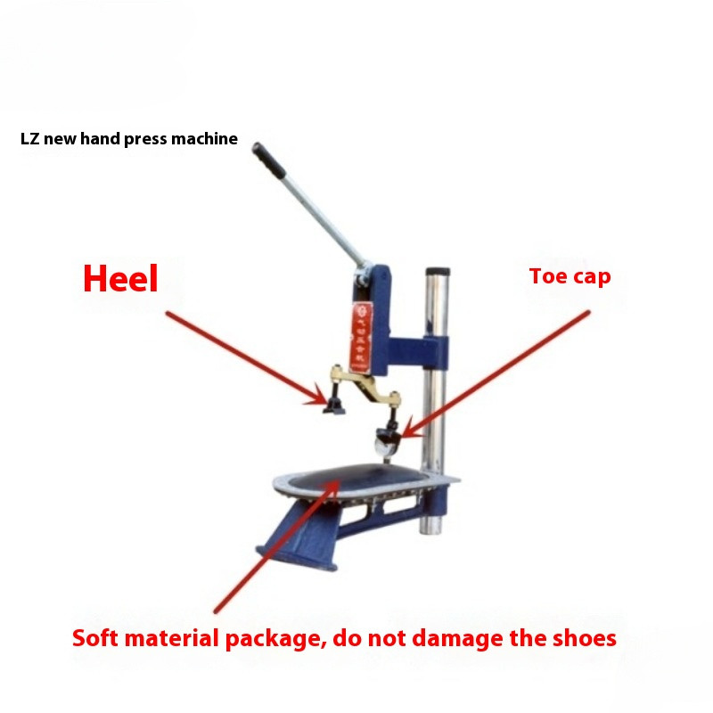 Pressure Fixing Machine Shoe And Sole Pressure Bonding Device Fixing Equipment Model: Manual bottom pressing machine Weight: 34.86kg Production capacity: 50 (pairs/hour) Applicable object: sole Applicable material: leather Shoemaking machinery: sole pressing machine Applicable sole: low flat heel Dimensions: 280*750*830mm