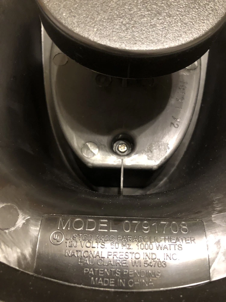 Presto Heat Dish Parabolic Electric Heater Model 0791708 Portable Space Warmer