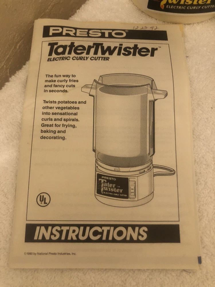 Presto Tater Twister Vintage Electric Curly Fry Cutter with Manual and Recip Included