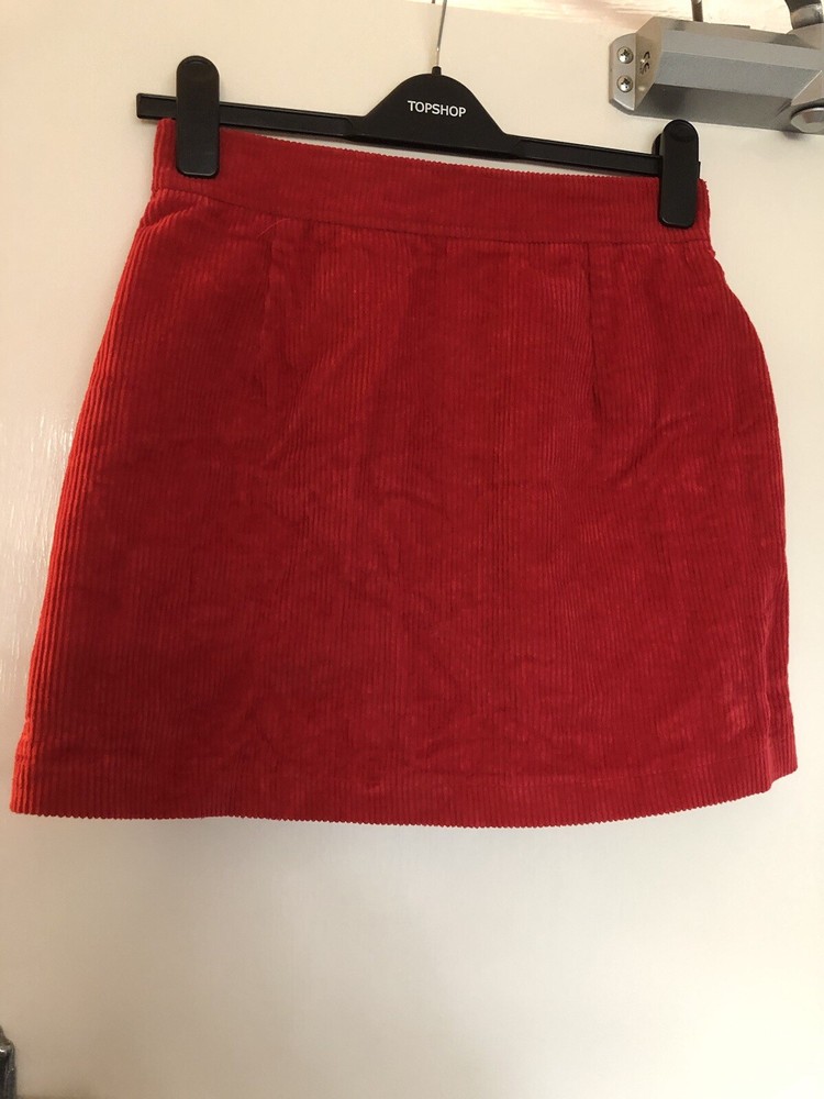 Gorgeous red corduroy mini skirt, with zip details and 2 studs at waistband. Excellent condition.