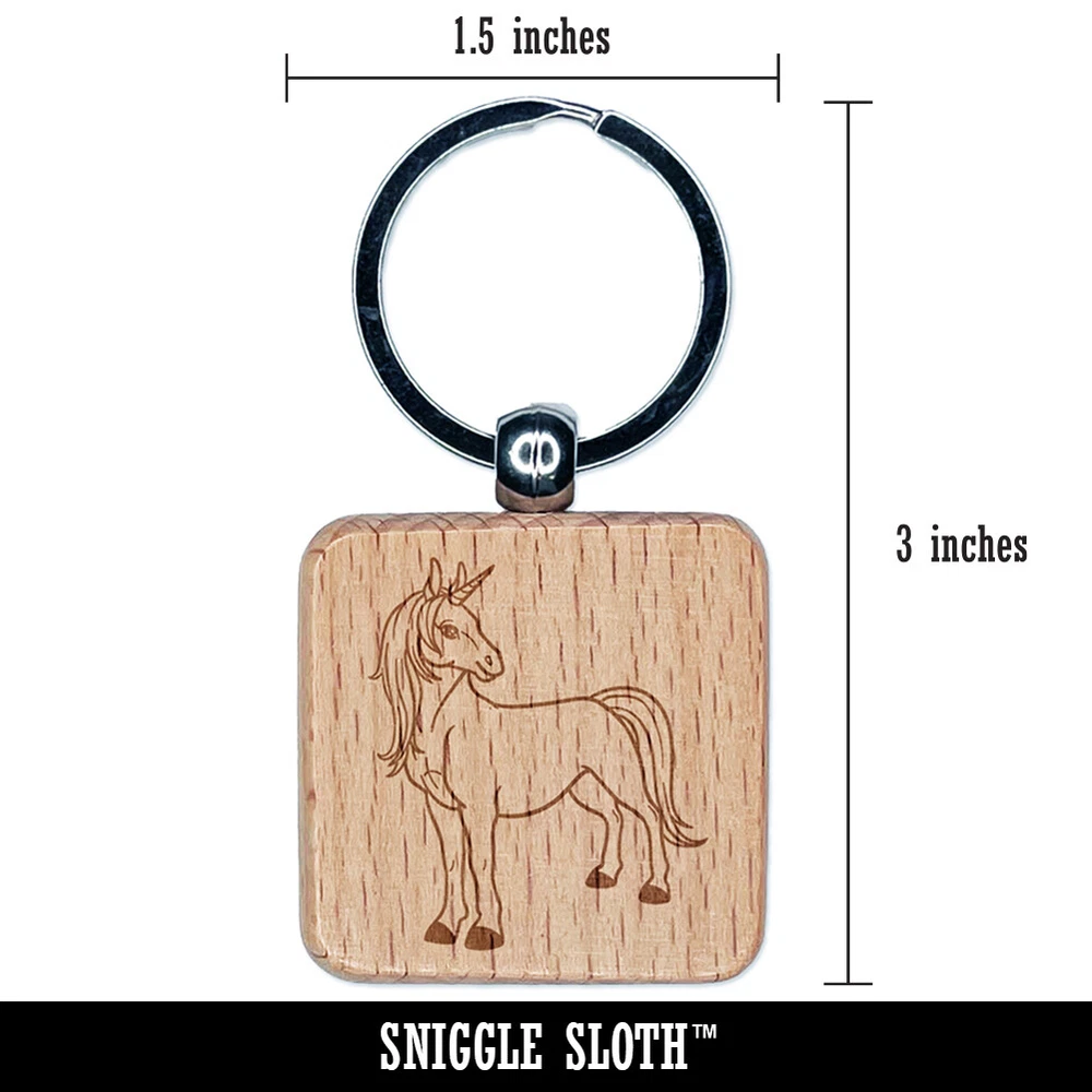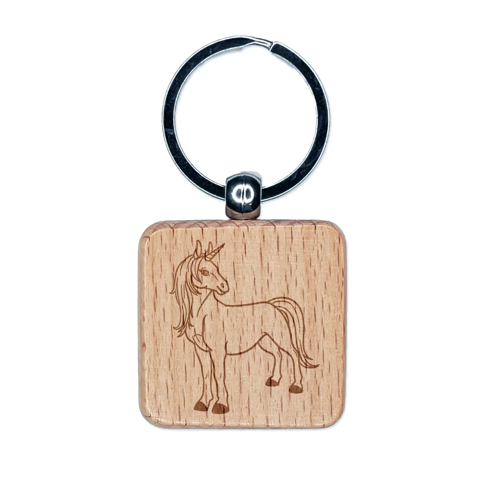 Pretty Unicorn Posing Engraved Wood Square Keychain Tag Charm