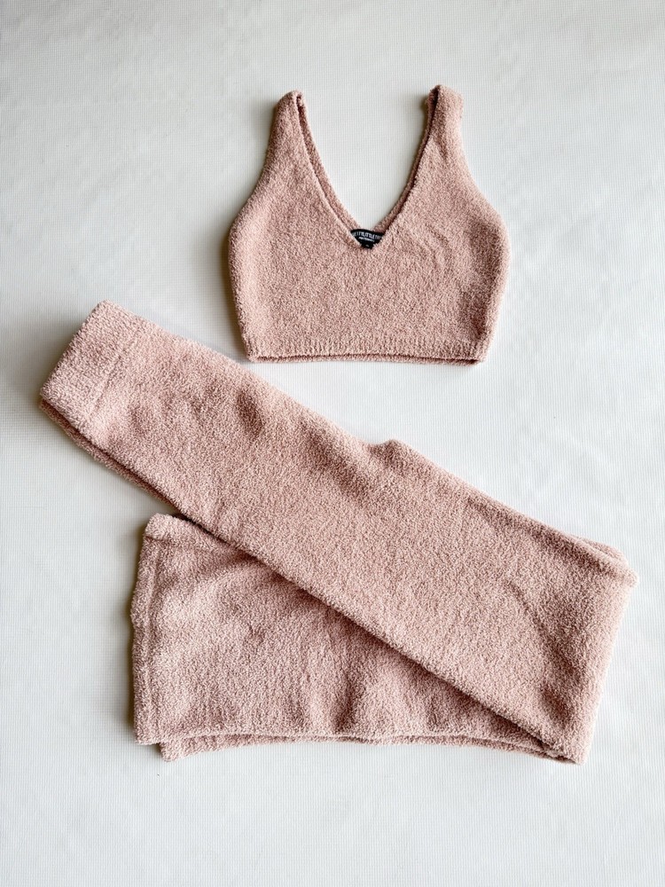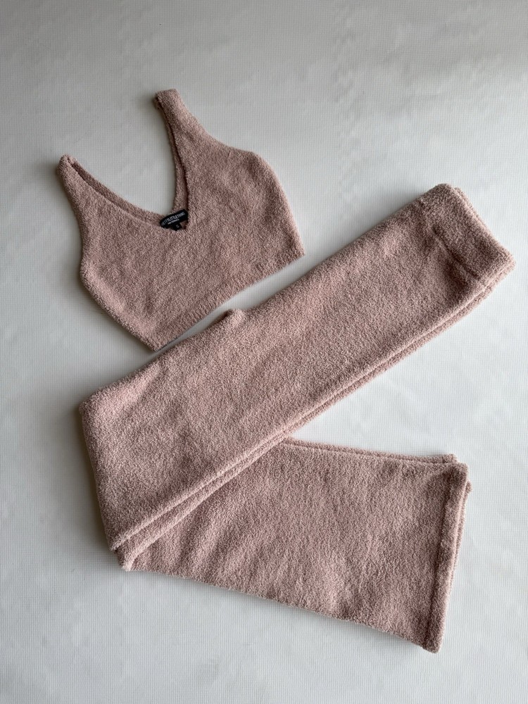 Get ready to rock your maternity style with this new and pretty Pink Set from PrettyLittleThing. This 2-piece outfit includes a stretched cropped top and flared pants in size S. The set is perfect for casual occasions, and the knit fabric type offers comfort and stretch for easy movement during pregnancy. The V-neckline and sleeveless design make it a great option for summer, fall, and spring seasons. The set features an abstract wave pattern in bold and vibrant colors, making it perfect for a vacation or retro-inspired look. The elastic waist and non-iron fabric make it easy to care for and wear. Condition of the item is Pre-Own in good shape! Shipped asap by USPS ground advantage mail.