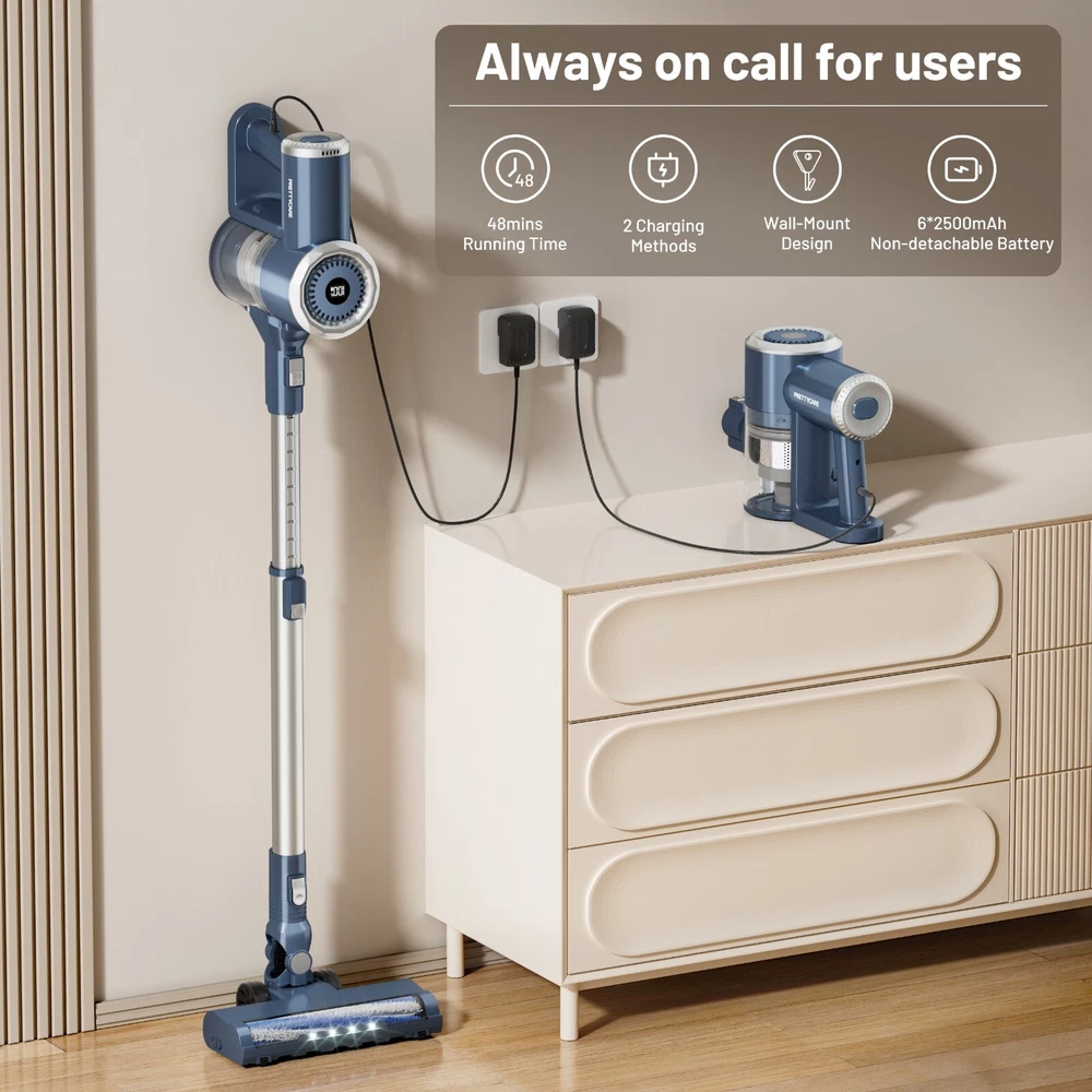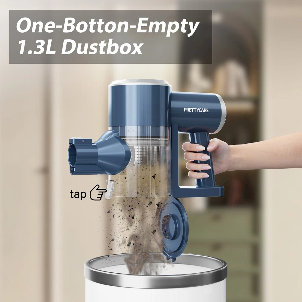 PrettyCare Pretty Life, Care Your Life. Whether your goal is to clean up a pile of pet hair,a handful of spilled breadcrumbs or a big mess of dirt,the PrettyCare W200 cordless vacuum cleaner makes it easy to solve all your problems and give you a clean, healthy and comfortable home. In addition to the basic cleaning functions, we have also done a lot of details, welcome to experience our versatile, powerful and intelligent cordless vacuum cleaner, it will bring you a new cleaning efficiency! ✅【6 * 2500mAh/ Upgraded Motor】 The PrettyCare cordless vacuum cleaner is equipped with a 6*2500mAh high-power battery and a high-performance 180W upgraded motor.It is very reliable because the larger capacity battery gives you a longer cleaning time. Say goodbye to annoying "cleaning breaks" and ensure a thorough cleaning of your 1937.50 square foot home in one go. ✅【48 minutes Running Time /28Kpa Super Suction】 With 28Kpa hurricane suction and 2 adjustable modes,the PrettyCare cordless vacuum cleaner can run for about 20 minutes at 28KPA power mode and even for about 48 minutes at 15kPa normal suction,amazingly it can adapt to different conditions and allow full use of the battery. It instantly wicks away dirt,debris,pet hair and stains and easily cleans hard floors, tiles and carpets.Please note that the actual use time may vary due to differences in use scenarios and accessories. ✅【Integrated LED Display and Warm Dust Cup】 The electric vacuum cleaner is equipped with a smart LED display so you can easily view the current status of the vacuum cleaner. Large capacity 1.3L large dust collection cup adopts "one-button dust collection" design, no need to constantly pull the trigger when vacuuming, making it easy to empty. ✅【6-stage High Efficiency Purification and Filtration】 In order to provide users with extremely clean air and excellent cleaning experience,we have developed a stainless steel filter filtration system, a powerful cyclone/precision filter hole and a 6-stage HEPA filtration system that can capture 99.99% of fine dust as small as 0.1 microns and discharge clean air. It has twice the service life of conventional filtration systems.(HEPA is washable and recyclable). ✅【Flexible LED Electric Floor Brush Head and Adjustable Tube】 To make it easy to look into dark corners and track dust,debris and hair under furniture,we designed four LED headlights on the floor brush.To clean all those hard-to-reach corners under the furniture and under the bed and remove all the dust, we also come with a flexible 180°side-swivel and 90°up-and-down swivel floor brush head and self-adjusting telescopic rod. Make cleaning more thorough and effective. ✅【Upright and Wall-mounted Cordless Vacuum Cleaner】 The lightweight unit weighs just 2.8 pounds and has an ergonomic handle that's perfect for one-handed cleaning. Even if used for a long time, it will not make your hands tired.At the same time, our machine can stand on its own, but also equipped with a wall hanger can be hung on the wall, in the middle of cleaning, you can stop cleaning at any time and let the vacuum cleaner upright anywhere, you can also let it back to the wall hanging, both ways are easy to store and use, charging does not take up any space. ✅ 【Multi-Functional Brush Head】 In addition to powerful floor brushes, we also come with convenient 2-in-1 brush heads and long flat brush heads, which have the advantage that you can combine them in a variety of different ways, so you can get the job done easily and efficiently. Easily clean stairs, curtains, windowsills, sofas, beds, cars, RVS and other hard-to-reach places! Meet all your daily cleaning needs on multiple surfaces, including hardwood floors, carpets and pet hair or food. ✅【Convenient Noiseless Operation】 The PrettyCare cordless vacuum cleaner uses ultra-lightweight materials to effectively reduce noise and provide a quiet cleaning experience. Since there is no friction from any carbon brushes, the upgraded high-power brushless motors generate less heat and are less noisy (60db), resulting in more energy saving and longer service life. The ideal gift for family and friends who value cleanliness and peace in the home. Warm Reminder: 1/ The filter should be cleaned and replaced regularly, otherwise it may cause garbage to clog the vent, resulting in rapid suction attenuation. 2/ If you have any questions about the operation, please feel free to contact customer service, we will provide you with professional service. Technical Specifications: Battery: 6*2500mAh lithium-ion battery Suction: 28Kpa strong cordless vacuum cleaner Filtration Method: 6-stage purification filtration (Washable) Runing Time: Max 48 minutes Adjustable Metal Rod: 2.6 ft - 3.4 ft (Aluminum) Dust Cup: 1.3L large capacity & One key dust removal Floor Brush: 180°+ 90° rotation degree & 4 LED lights Other Brush Heads: 2 in 1 brush and crevice brush Screen: LED display Storage Way: Wall hanging & Upright Cleaning Ways: 2 Ways Product Weight: 5.4 lbs ultra light body Charging Time: 4-5 hours Noise Level: ≤60dB Cleaning Range: 180㎡(1937.50 square feet) Recommended Use: Carpet, Hard wood,Marble, Tile Package Include: 1 x W200 Vacuum Cleaner 1 x Rotatable Brush Head 1 x Wall Bracket 2 x Hepa Filter 1 x 2 in 1 Brush 1 x Crevice Nozzle 1 x Adjustable Metal Tube 1 x Power Adapter 1 x Instruction Manual For Better Use: 1. Please use the original adapter to charge the battery. 2. Please Clean the filter after each use and keep it dry. 3. Please ensure that each component is installed correctly before using. 4. Please don't use the cordless floor cleaner to suction anywhere with water. 5. Please promptly empty the dust in the dust collection cup after use. 6. Please clean the filter and black cylindrical sponge while emptying the trash. 7. Please keep your vacuum cleaner and charger in a cool, dry place indoors.