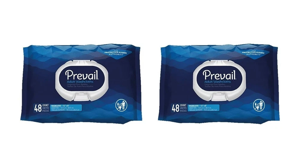 Prevail Adult Wipe or Washcloth 8 x 12" Wipes 48ct Pack/2 packs/ total 96 ct