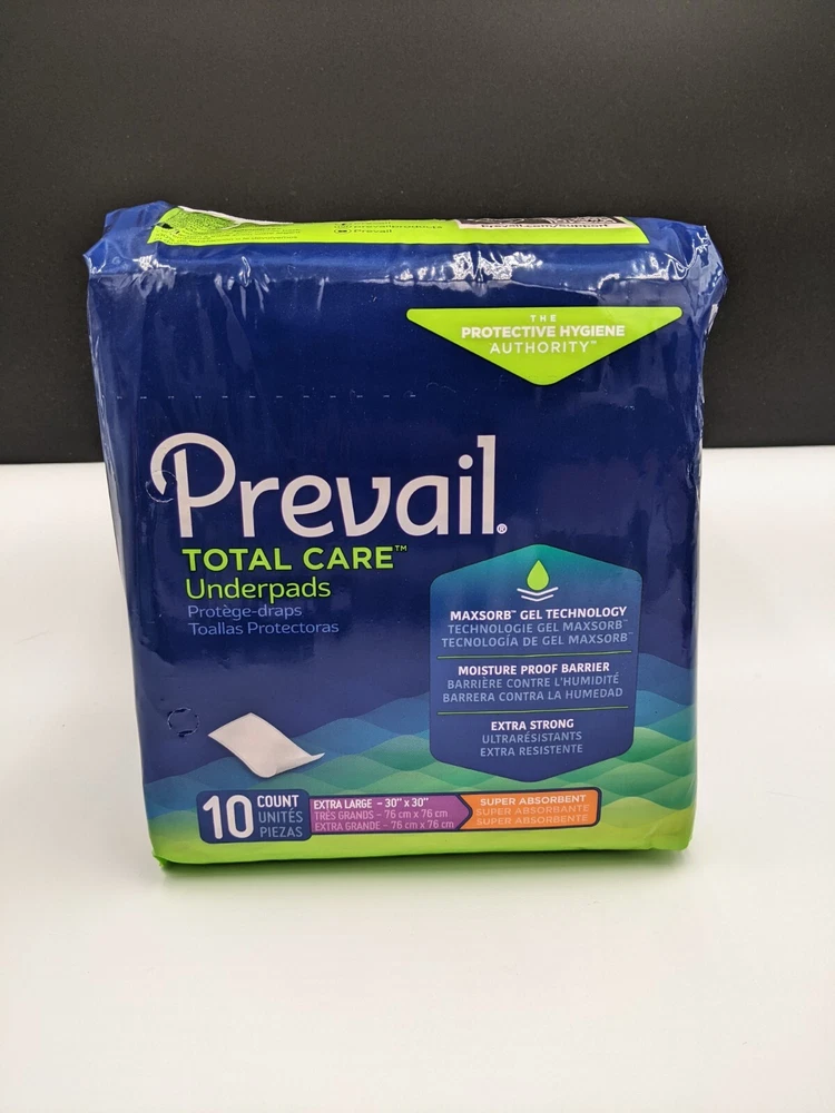 Prevail Total Care Disposable Underpads (30"X30") 10 Pads Extra Large Super Abso. Condition is New. Shipped with USPS Ground Advantage.