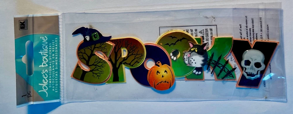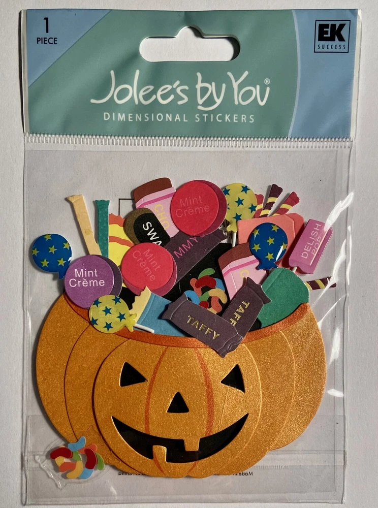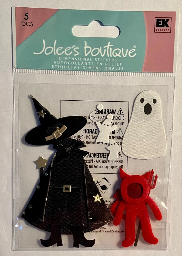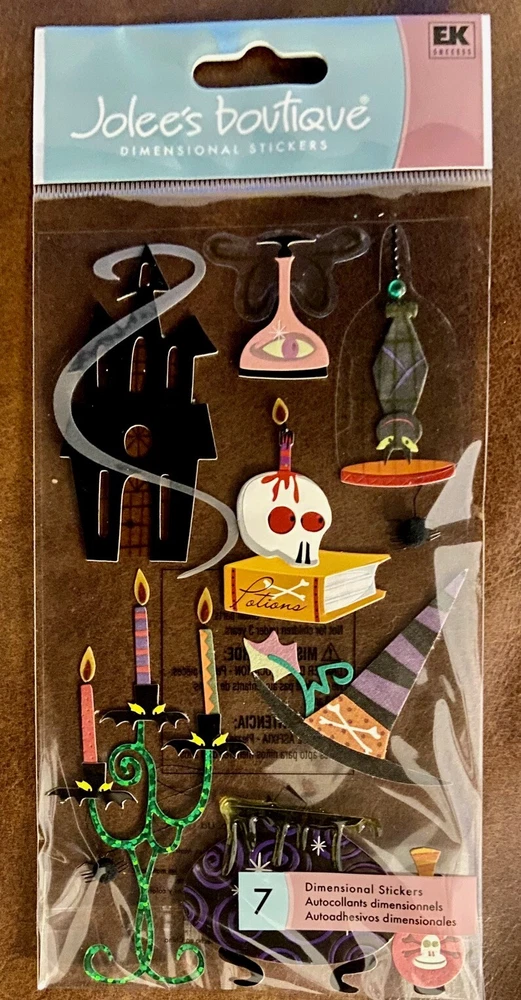 Get ready for Halloween with Jolee's Boutique scrapbooking stickers! Choose from a variety of spooky designs to add to your scrapbook or paper craft projects. All stickers are dimensional and feature vibrant multi-colors that will add a festive touch to any project. These stickers are perfect for scrapbooking, card making, or any other paper crafts. They are made by Jolee's Boutique, a trusted brand in the crafting industry. Whether you're a seasoned scrapbooker or just starting out, these stickers are sure to add a touch of Halloween spirit to your projects.