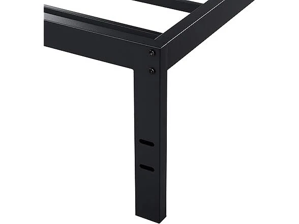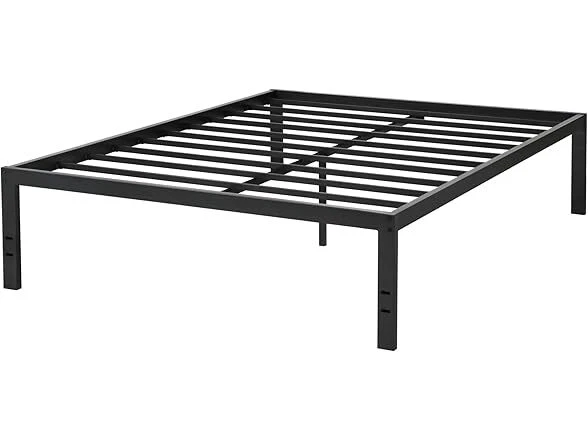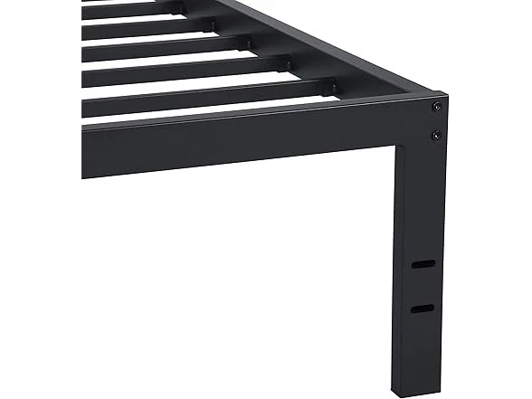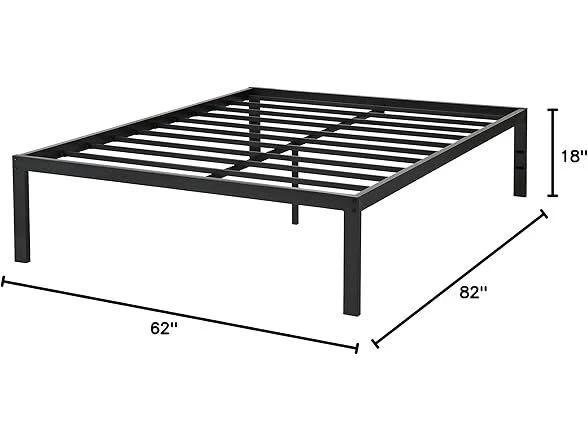 PrimaSleep 18 Inch Tall Metal Bed Frame/Dura Steel Slat/Anti-Slip Support/No Box Spring Needed, Queen, Black Condition: New Features The 18 inch high profile provides you an extra under bed storage space. Also you do not need box spring for this product. It is unique design, The frame encloses the mattress to prevent it from slipping. Given it's simple design, This frame is a great addition to any bedroom style. Forget the weak squeaking with Dura steel frame. Dura Metal Imported [ Anti-slip structure ] Mattress is embedded in Steel frame to Avoid sliding or wobbling. Product Dimensions :82.0 x 62.0 x 18.0 inches [ Under bed storage space ] 16.25 inches of Clearance..[ Superior strength ] No box Spring needed with the solid Steel frame. [ Easy assembly ] No additional tools required. [Outer dimensions] 82 x 62 x 18 inches [Inner dimensions] 79. 5 x 59. 5 inches Ensure 5 years manufacturer warranty. Specs In the Box: (1) PrimaSleep 18 Inch Tall Metal Bed Frame/Dura Steel Slat/Anti-Slip Support/No Box Spring Needed, Queen, Black