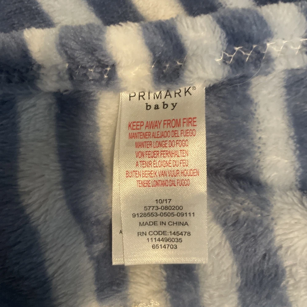 Keep your little boy cozy and comfortable with this Primark baby blue stripped blanket. Measuring 36in x 27in, it's the perfect size to fit a crib or pram. Made from fleece material, it's easy to care for and will keep your baby warm during chilly nights. The blanket features a stylish blue color and is perfect for boys. This multi-purpose blanket is a must-have for any parent. It's not only functional, but also stylish and comfortable. Whether you're looking to snuggle up with your baby or use it as an extra layer of warmth, this blanket is perfect for you.
