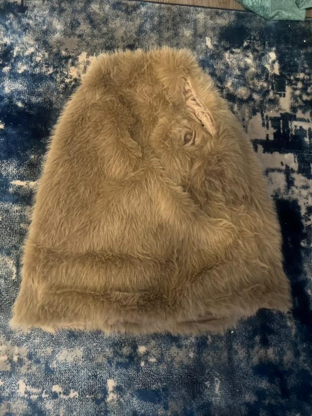 This Primark coat in size 2XL is a new overcoat for women. It features faux fur as the outer shell material, and comes in a beige colour. The style is designed for regular fit, making it a stylish addition to any wardrobe.