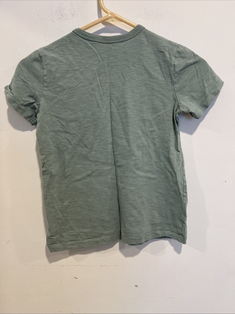 The product is a set of two green short-sleeve T-shirts for boys in size 8/9. Made from 100% cotton, these pullover shirts feature a round neckline, a regular fit, and a pocket detail. Perfect for casual occasions during the summer, fall, and spring seasons, these basic shirts from the brand Primary are easy to care for with machine washable fabric. Ideal for everyday wear, these shirts are a stylish addition to any young boy's wardrobe.