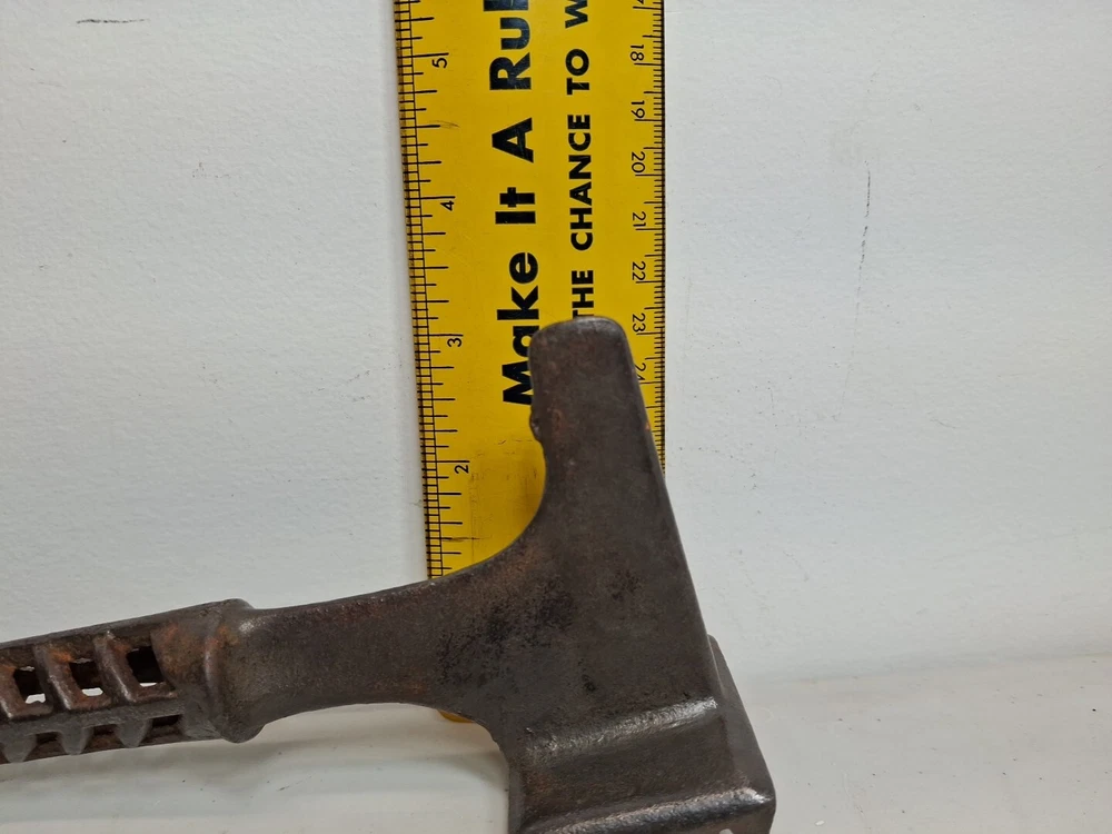 This primitive solid metal meat tenderizer tool is a must-have for any kitchen enthusiast. Its unique design and style make it a great addition to any collection of kitchen equipment. The tool is made of high-quality metal and has a sturdy construction that ensures it will last for years to come. While the date of creation and region of origin are unknown, this original piece is sure to impress any collector of antiques and primitives. Whether you're using it to tenderize meat or simply displaying it in your kitchen, this tool is sure to be a conversation starter. Add it to your collection today!
