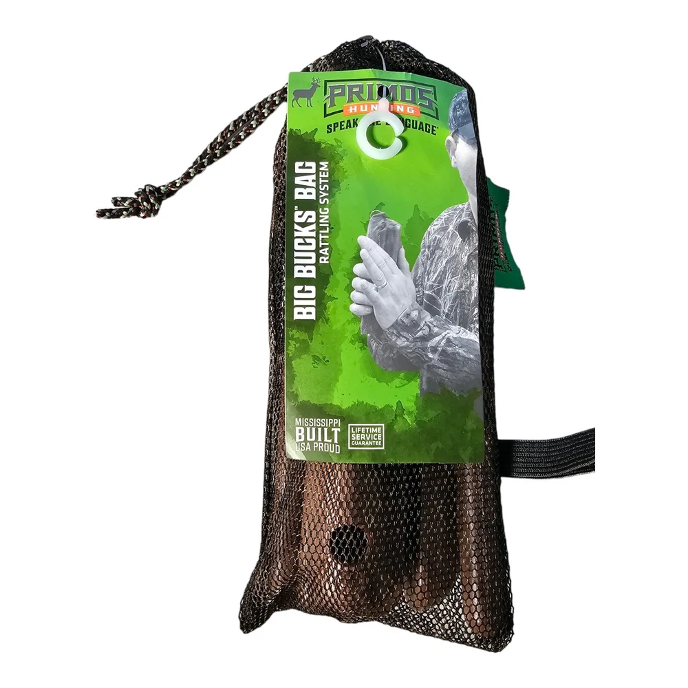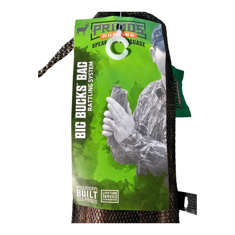 New Primos Big Bucks Bag Rattling System Big sounds in a convenient, compact size. Sound like small bucks sparring or reproduce a dominant buck fight. You can tune your bag by removing one or more of the Power Tines. I ship FAST!! Your item will be in the mail the day after payment is received. Thanks for looking!!