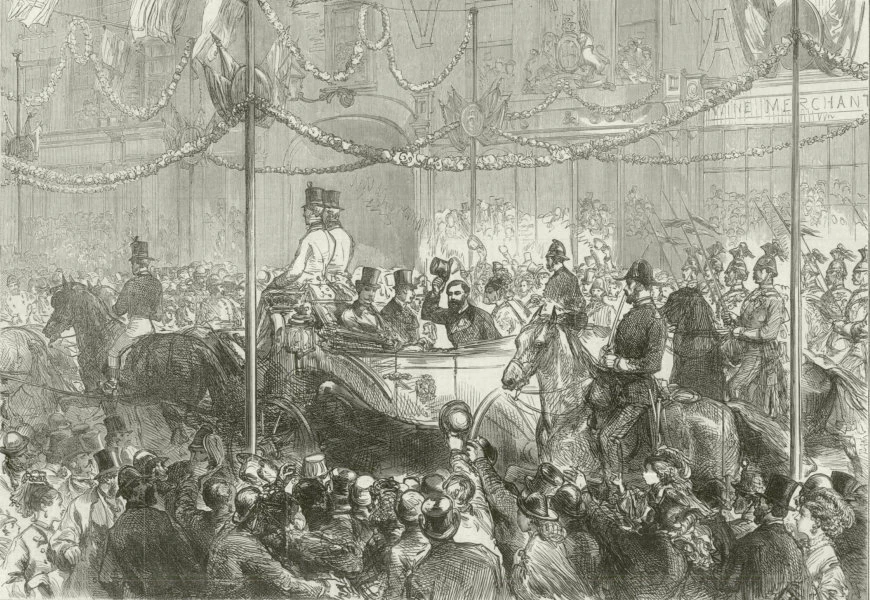 The Royal Visit to Birmingham: The Prince and Princess of Wales passing up Bull-Street Antique wood-engraved print. Illustrated London News full page from 14 November 1874 Caption below picture: The Royal Visit to Birmingham: The Prince and Princess of Wales passing up Bull-Street DATE PRINTED: 14/11/1874 IMAGE SIZE: Approx Overall page size (approx): 39 x 26cm, 15 x 10 inches ARTIST/CARTOGRAPHER/ENGRAVER: Unsigned PROVENANCE: The Illustrated London News TYPE: Antique wood-engraved print. Illustrated London News full page from 14 November 1874 VERSO: There are images and/or text printed on the reverse side of the picture. In some cases this may be visible on the picture itself (please check the scan prior to your purchase) or around the margin of the picture CONDITION: Good. The print is in good condition. However, please note that the condition of the item that you receive may differ slightly from that shown in the image, which may have been taken from a different example of the print. The strength of the impression and the degree to which the text/images on the reverse side show through on the front may vary somewhat from that shown. There may be some slight spotting, minor blemishes or light offsetting Virtually all antiquarian maps and prints are subject to some normal aging due to use and time which is not obtrusive unless otherwise stated. I offer a no questions asked return policy - see below. AUTHENTICITY: This is an authentic historic print, published at the date stated above. I do not offer reproductions. It is not a modern copy. The term 'original' when applied to a print means that it was printed at the first or original date of publication; it does not imply that the item is unique. 'Print' means any image created by applying an inked block to paper or card under pressure by any method including wood engraving, steel engraving, copperplate, wood cut and lithography. REMARKS: FRANCE: Gravures et Cartes anciennes. DEUTSCHLAND: Alte Lankarten und Stadt ansichten. ITALIA: Stampe e Mappe antiche. ESPAÑA: Mapas antiquos y impresiones antiguas. E and OE. Force Majeure. English law shall apply. RETURNS POLICY: I offer a no questions returns policy. All I ask is that you pay return shipping and mail back to me in original condition, suitably packed & insured, within 14 days of receipt.