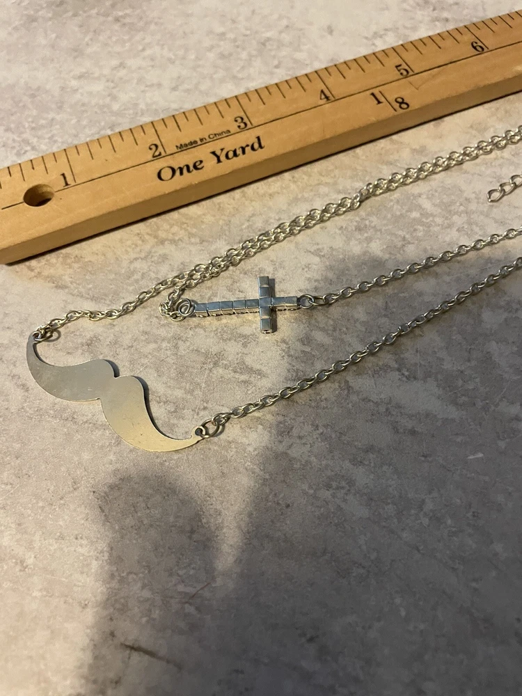 HomePrincess Accessories Rhinestone Cross Necklace And Earrings With Mustache NWT