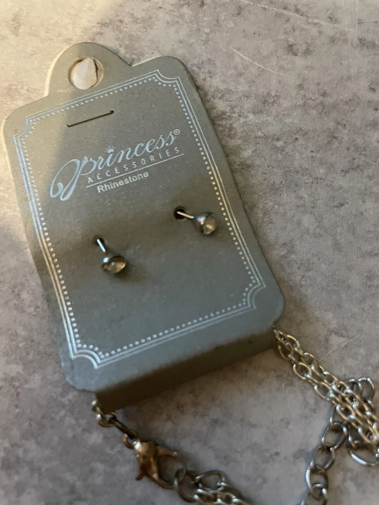 Princess Accessories Rhinestone Cross Necklace And Earrings With Mustache NWT