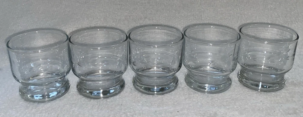 Set a five Princess House Heritage glass punch cups. Good for replacement of the princess house Heritage Punchbowl set if you’re missing cups or need extras. These glasses are in excellent condition. No chips or cracks. See pictures.